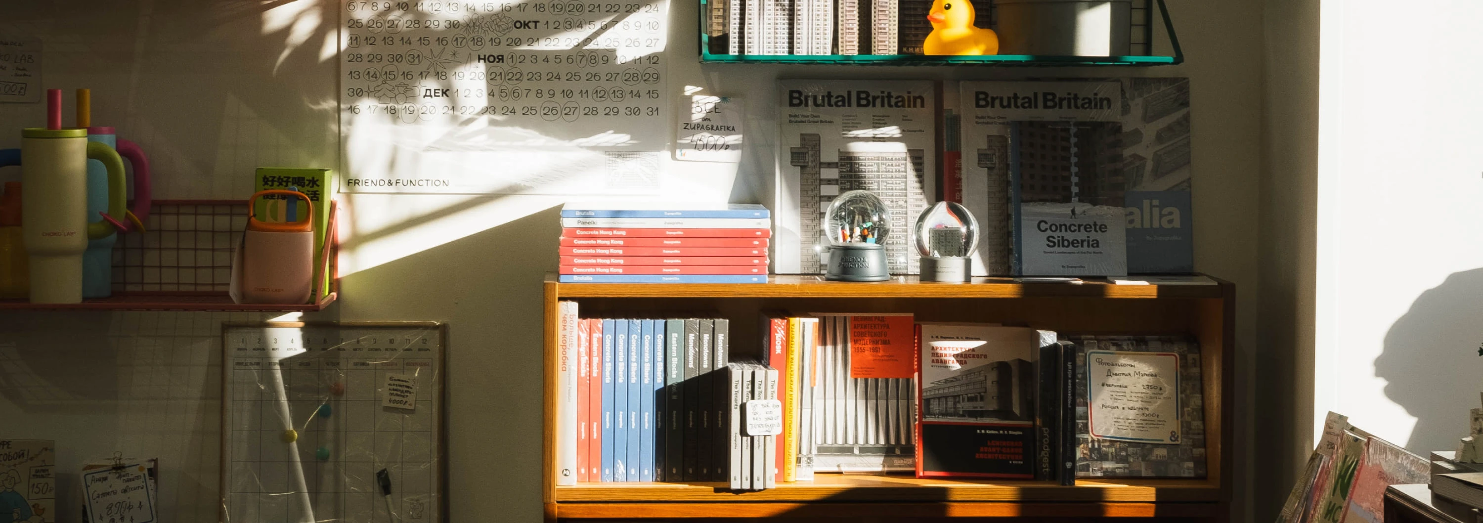 Отдельное внимание в Friend & Function уделено книгам — и это не случайное дополнение к ассортименту, а аккуратно собранная подборка изданий, которые хочется рассматривать, листать и дарить. В разделе представлены книги-конструкторы, книги по дизайну, фотографии, кино и культуре, фотоальбомы Дмитрия Маркова, а также журналы для взрослых и детей. Есть много всего для любителей почитать на английском, да и вообще много классной зарубежной литературы.
