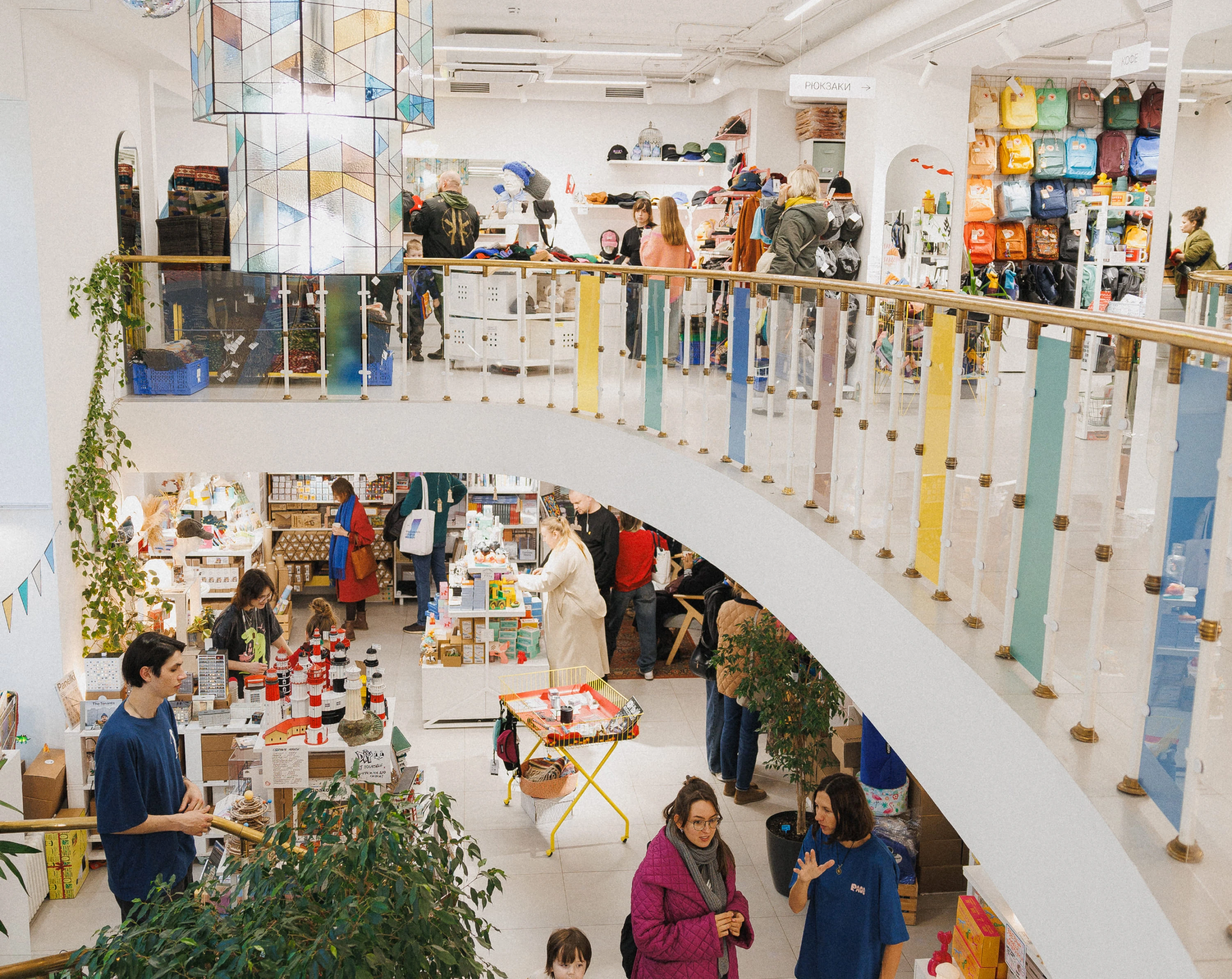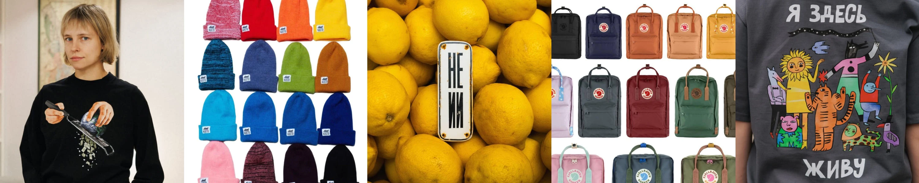 Ассортимент магазина невероятно широкий. Рюкзаки и сумки занимают заметное место: практичные, удобные в городе, продуманные по форме и материалам, под любые нужды. Одежда тоже представлена самая разная: футболки известных мировых брендов, рубашки, флиски (даже есть patagonia!), комбинезоны и халаты, комфортные ткани и детали которых постепенно становятся любимыми. Кепки и шапки занимают отдельную площадку в шоурумах.
