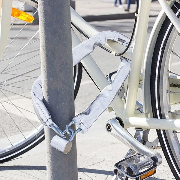 Помимо самого замка также есть специальная оплетка, сделанная из пластика, брезента или другой ткани. Во-первых, это защитит раму от царапин. Во-вторых, защитит цепь от воздействия влаги и грязи. И в третьих, добавит защиты. Всё это делает цепь надёжным замком для велосипеда.