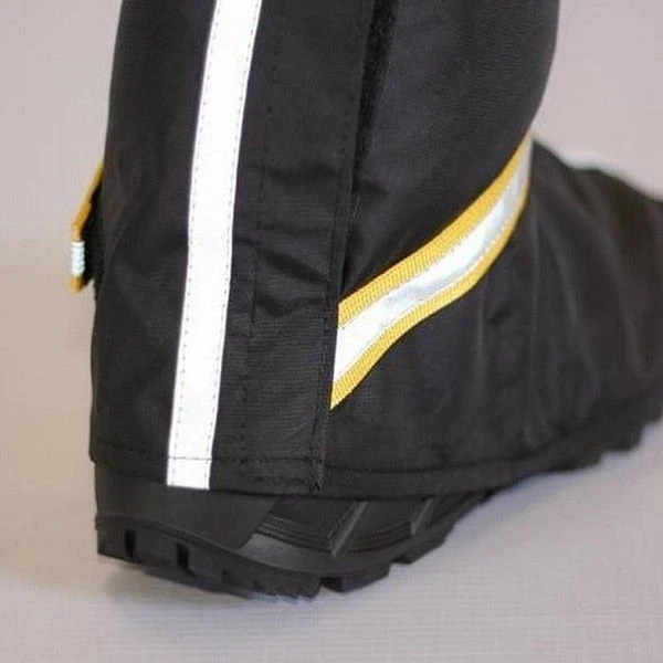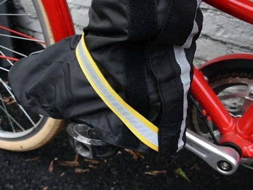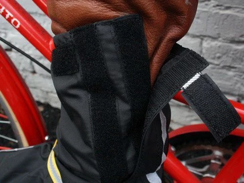 - Велобахилы застегиваются сзади на липучку с возможностью регулировки, поэтому ими всегда можно обтянуть обувь достаточно плотно.
