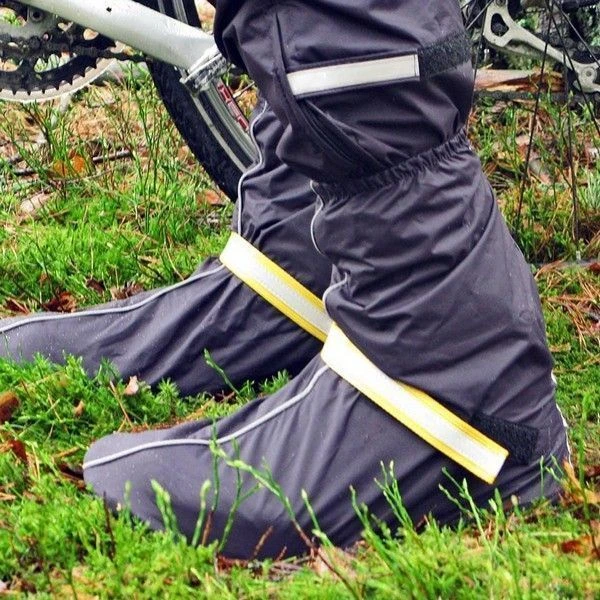 - В комплект входит упаковочный мешочек яркого цвета из непромокаемой ткани (чтобы велобахилы можно было убрать в рюкзак или сумку, не испачкав вещи).