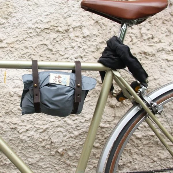 - Когда дождь закончится, дождевик можно свернуть обратно и притянуть ремнями из натуральной кожи обратно к раме, рулю или седлу вашего велосипеда;