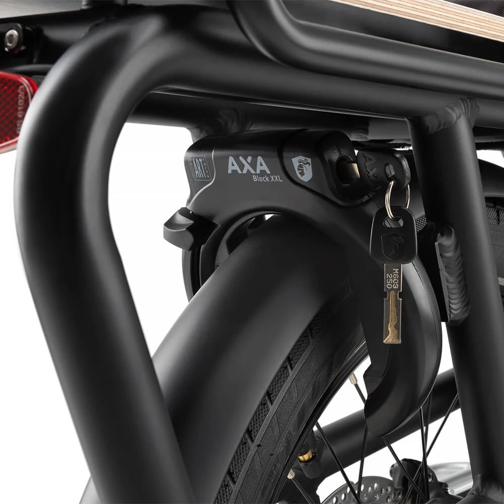 - Высококачественный кольцевой замок AXA Block XXL для блокировки рамы.