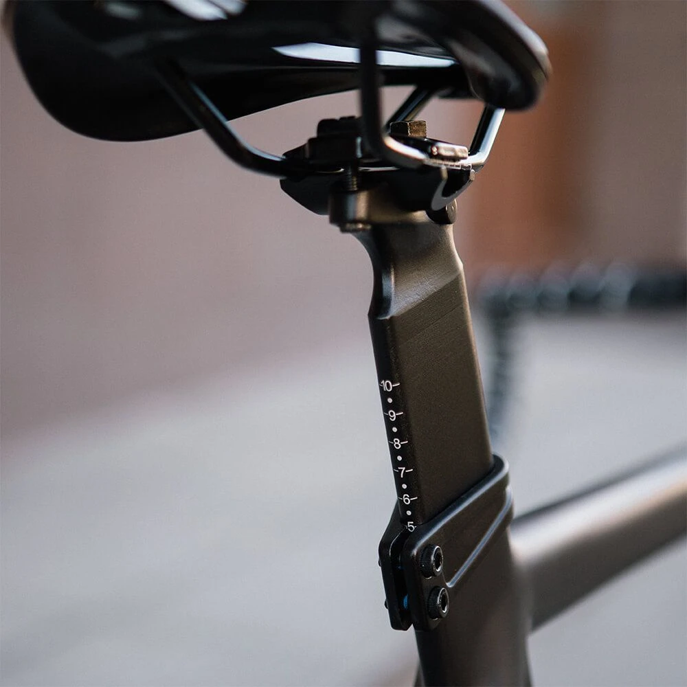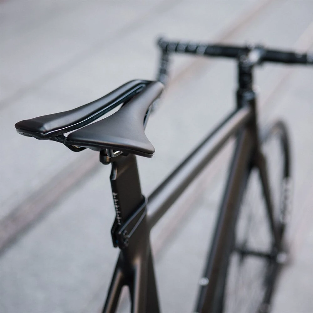 - Удобное, укороченное и более широкое седло Track вкупе с аэродинамичным штырем.
