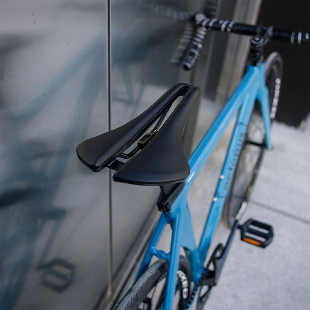 - Удобное, укороченное и более широкое седло Track вкупе с аэродинамичным штырем.
