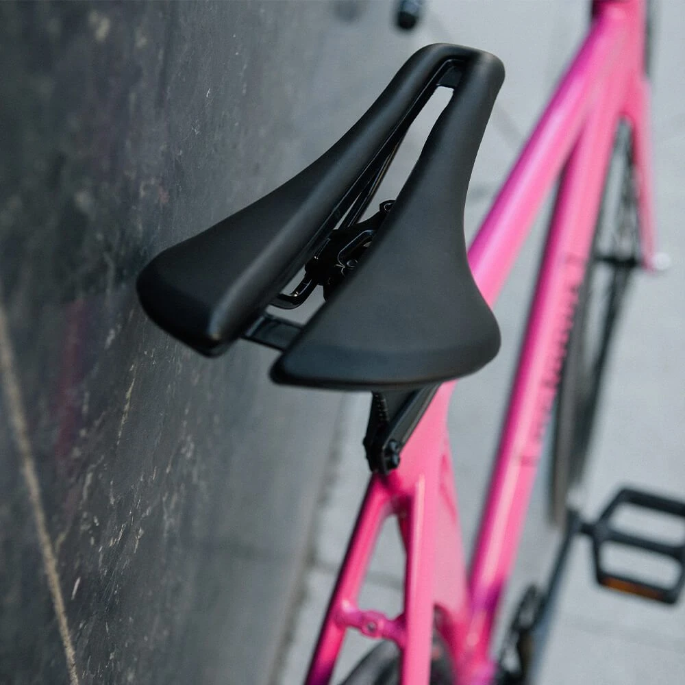 - Удобное, укороченное и более широкое седло Track вкупе с аэродинамичным штырем.