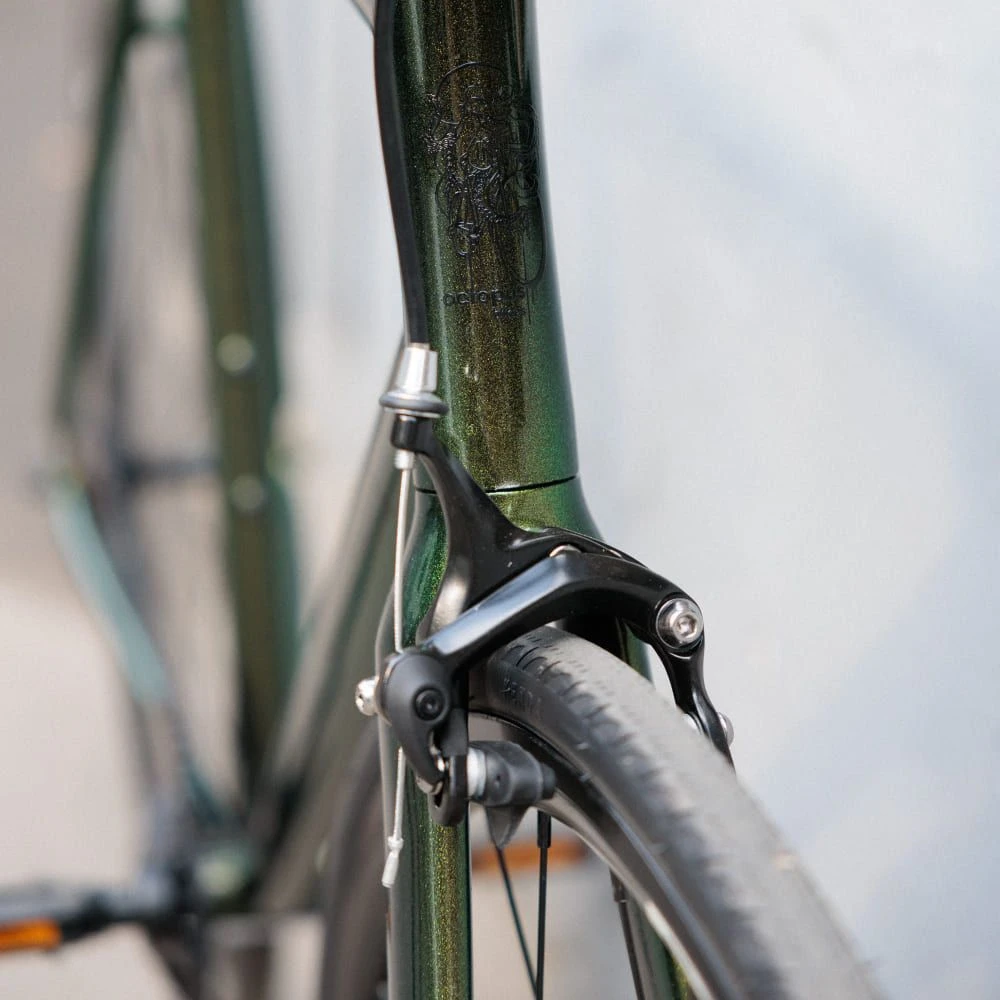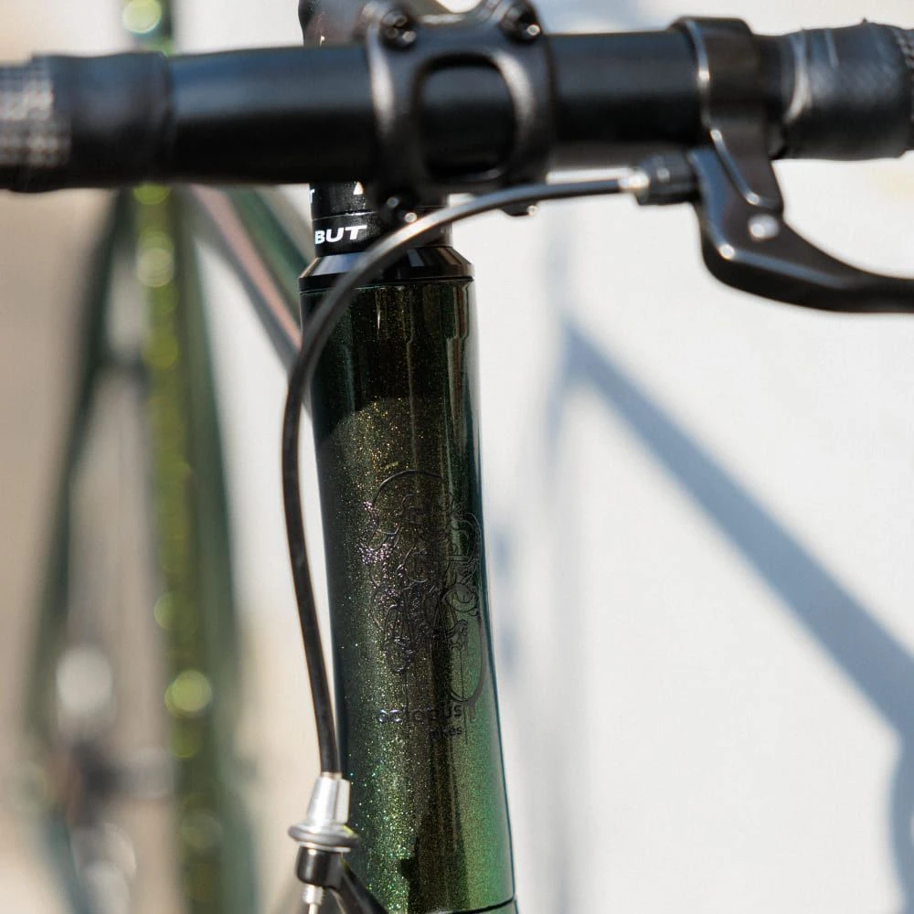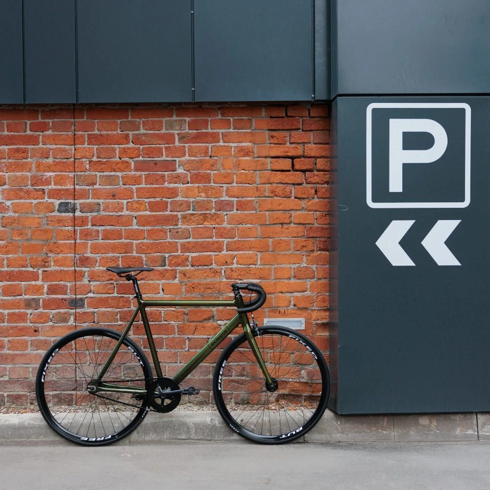 Полностью алюминиевый 6061 фреймсет с двойным баттингом, двухсторонние стальные накладки на дропаутах, приличные зазоры под покрышки 35мм сзади и 32мм спереди. Фривил, тормоз и фикс звезда в комплекте.