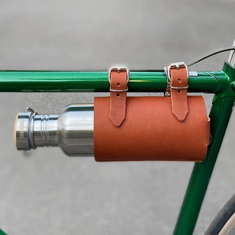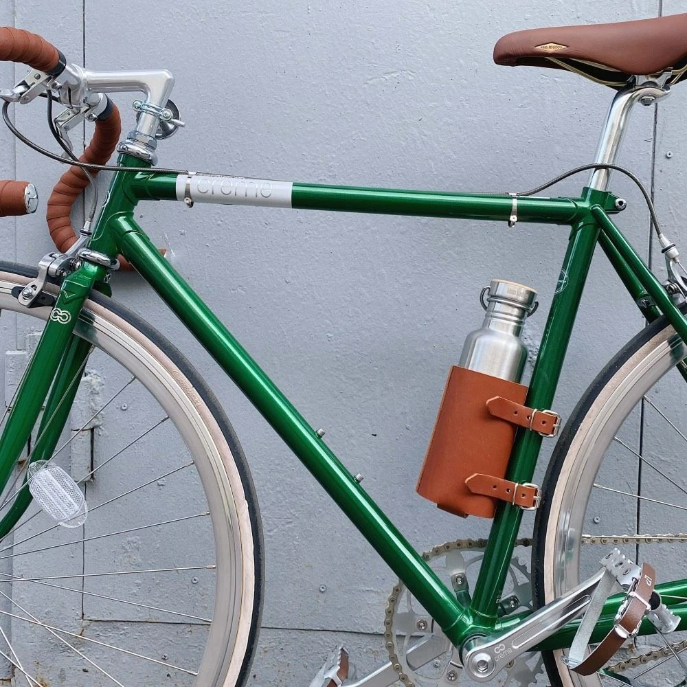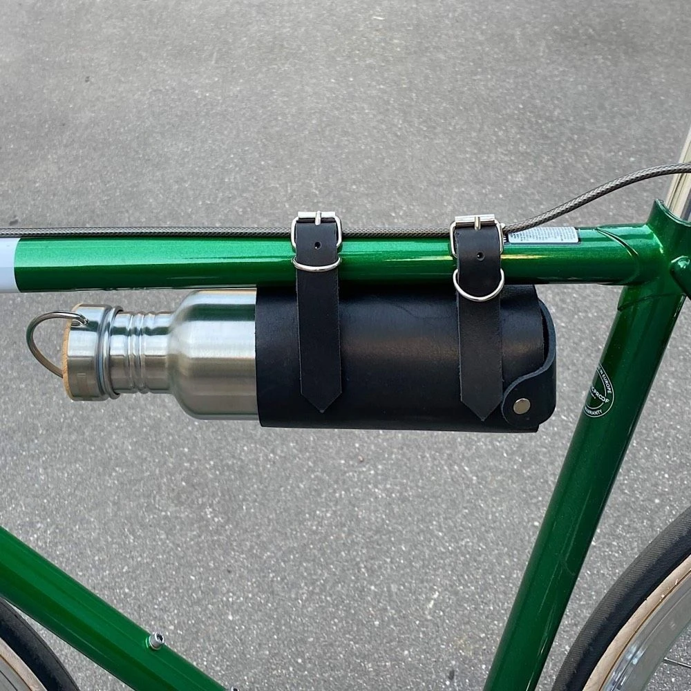 Незаменимый аксессуар для городских модников и любителей экстравагантных деталей: держатель бутылочки вина и воды на раме велосипеда.