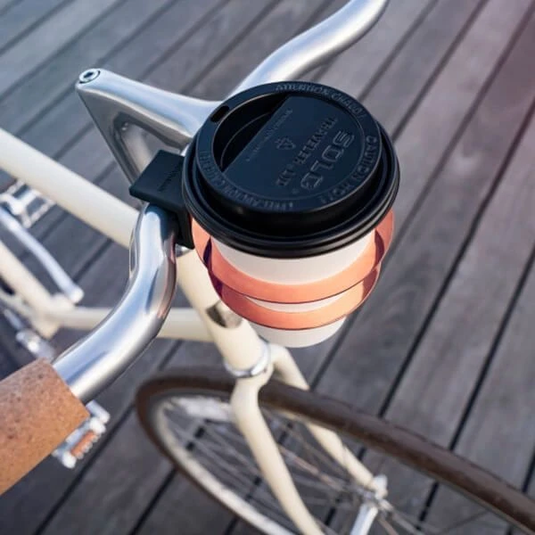 Просто прикрепите подставку на руль велосипеда, вставьте в нее кружку и наслаждайтесь кофе, чаем или любым другим напитком на всем вашем пути.