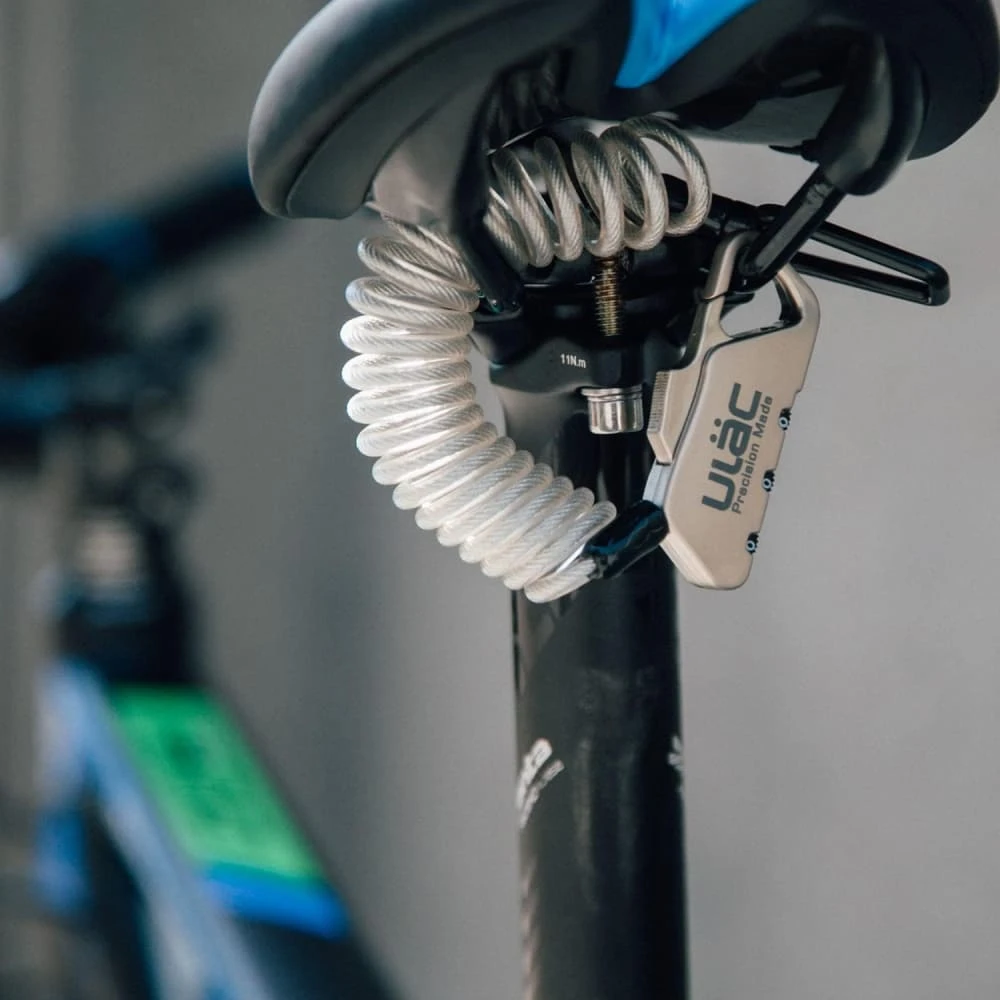 - Многоцелевой замок для шлема, колеса, седла и рамы. Защита багажа, спортивного инвентаря.
