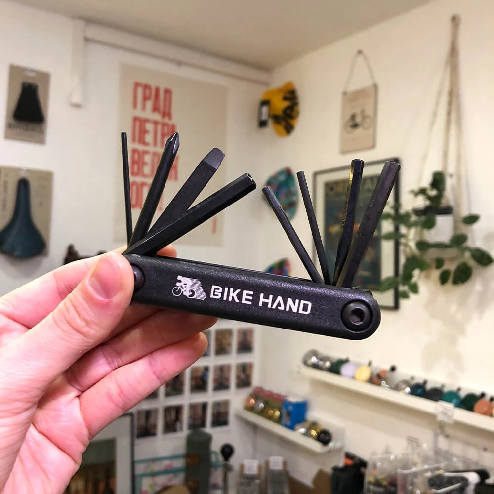 Простой и компактный набор всех необходимых ключей для регулировки и настройки велосипеда или самоката.