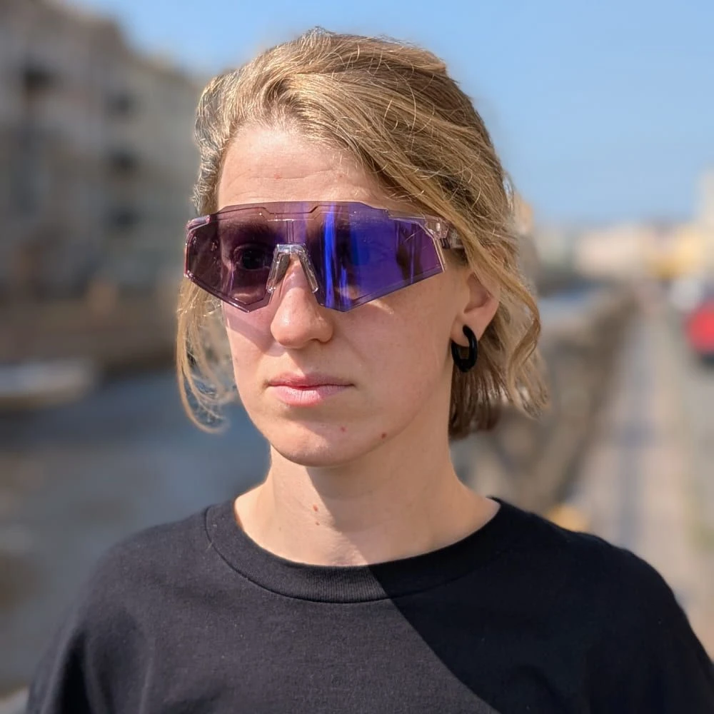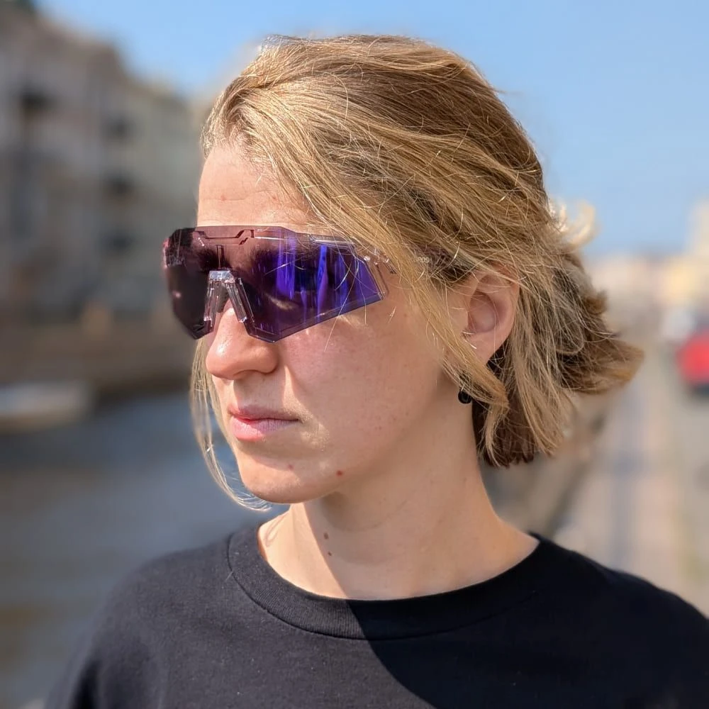 - Фотохромные синие линзы. Самостоятельно затемняются или светлеют в зависимости от уровня освещения, исключая необходимость сменных стёкол
