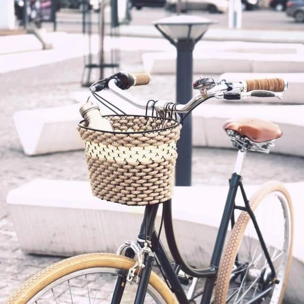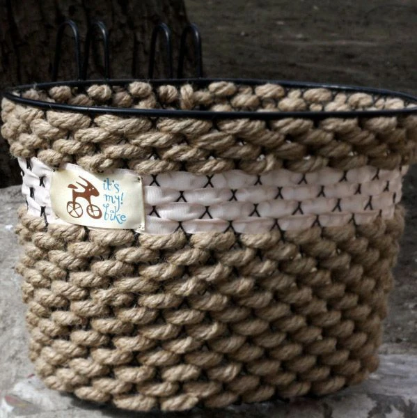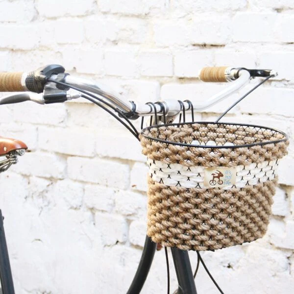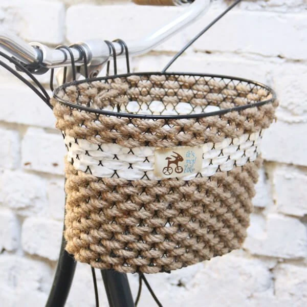 Прекрасная велосипедная корзина на руль с алюминиевой основой и прочным канатом.