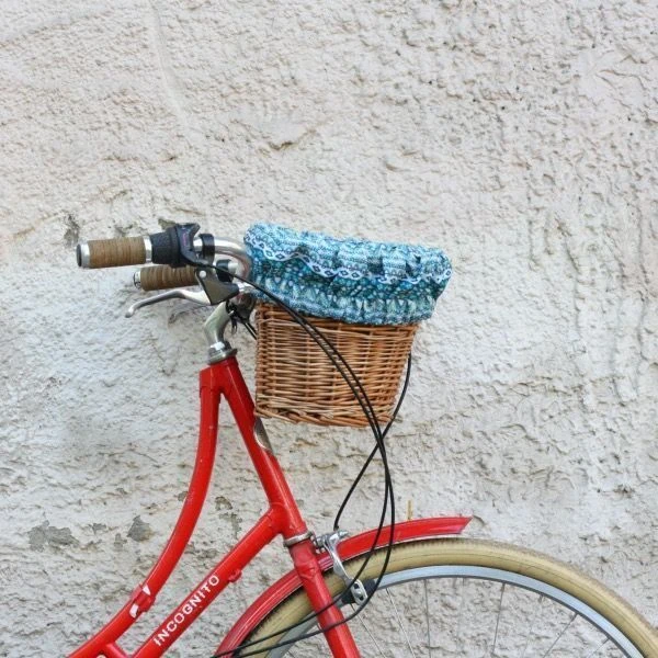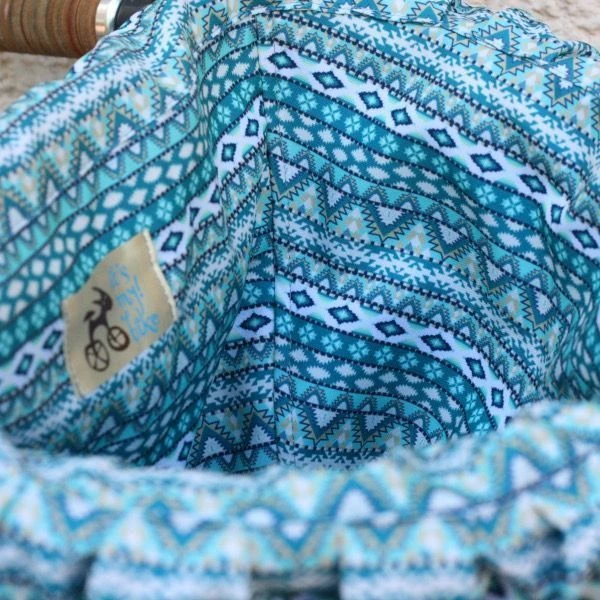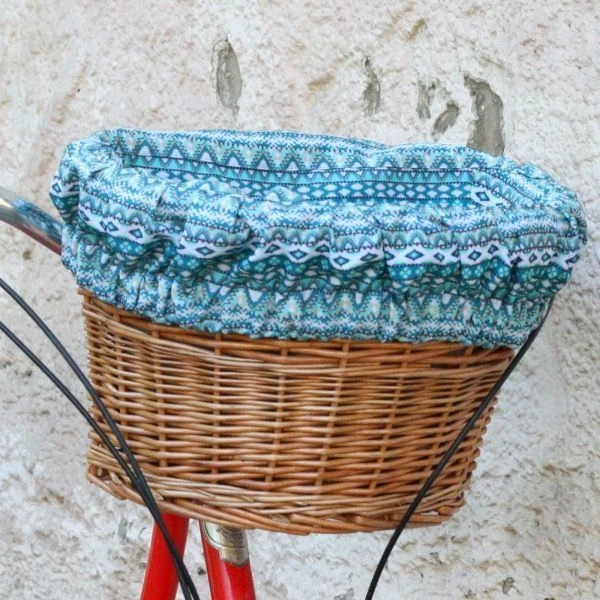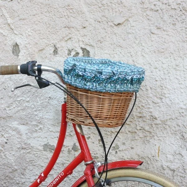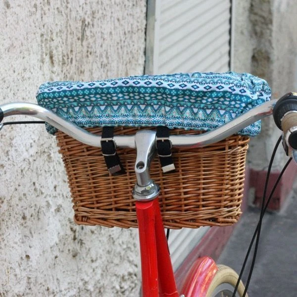 Удобная корзина на руль с ярким вкладышем из ткани.