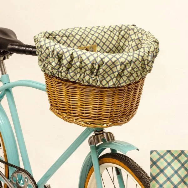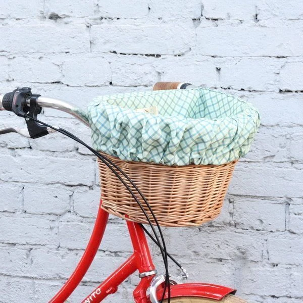 Удобная корзина на руль с ярким вкладышем из ткани.