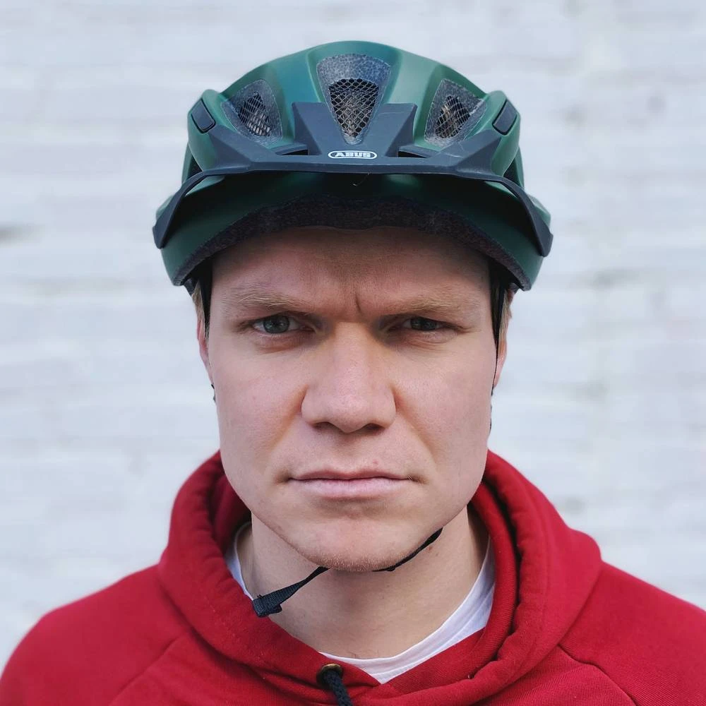 - Надежный лаконичный велосипедный шлем от немецкого бренда ABUS.