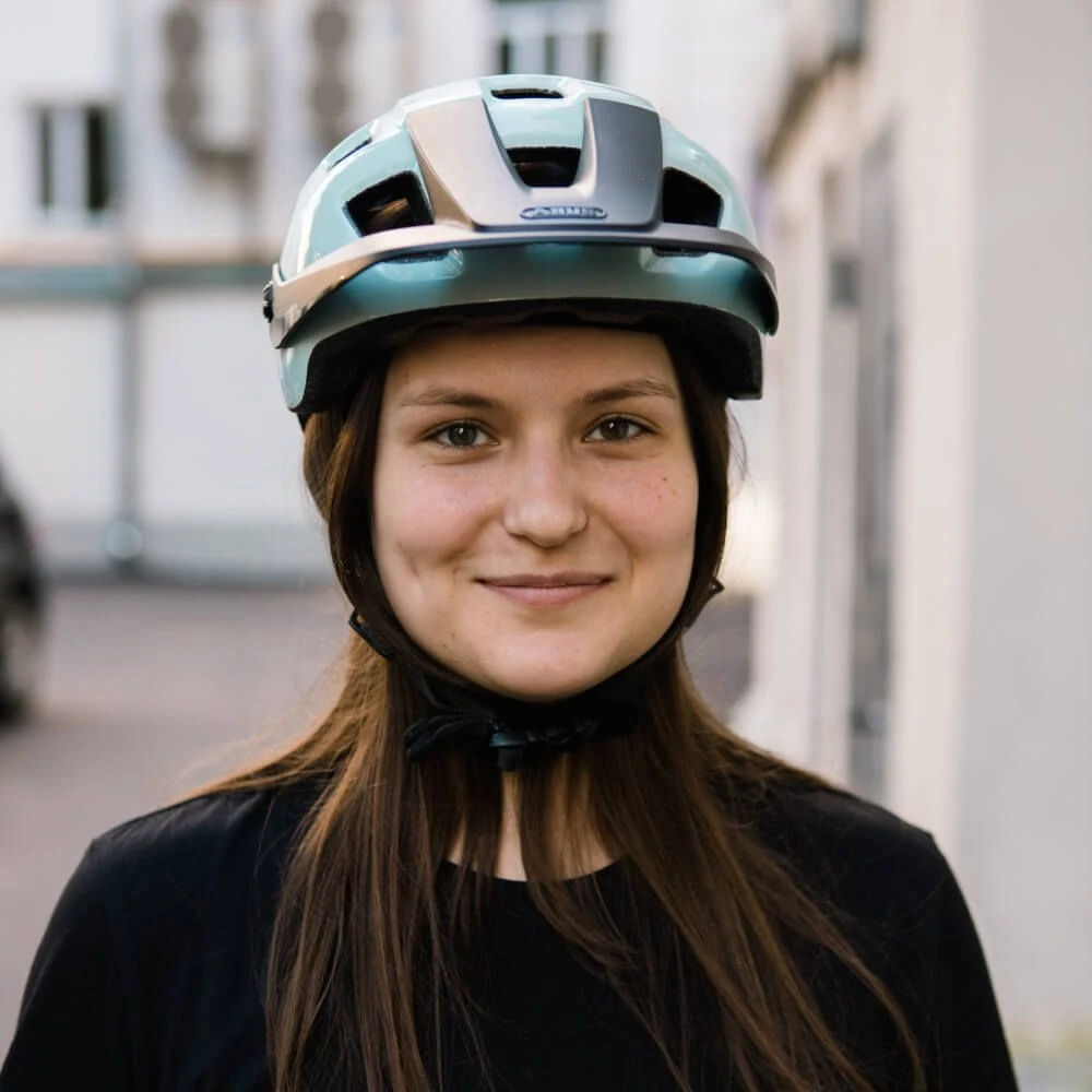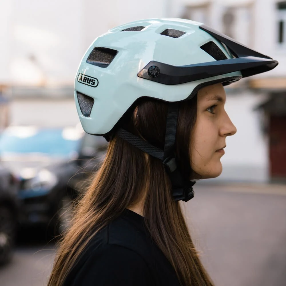 - Надежный лаконичный велосипедный шлем от немецкого бренда ABUS.