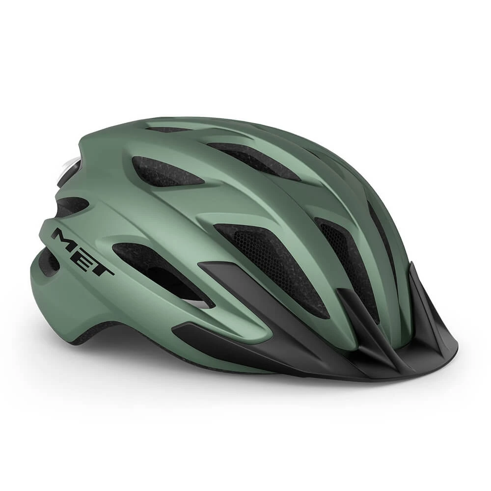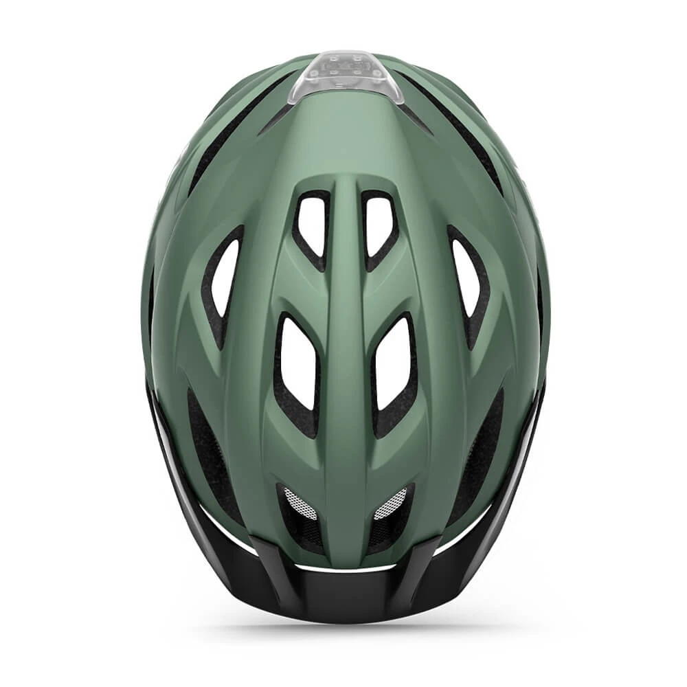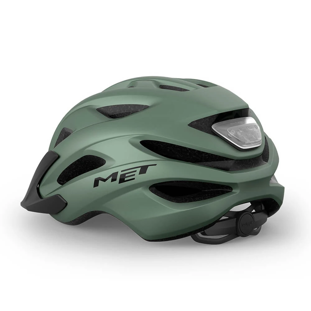 Лёгкий универсальный шлем MET Crossover зеленого цвета отлично подойдёт для использования в условиях города – этому способствует его низкий вес, оптимальная вентилируемость и встроенный светодиодный фонарь. Шлем можно использовать как с козырьком, так и без него.