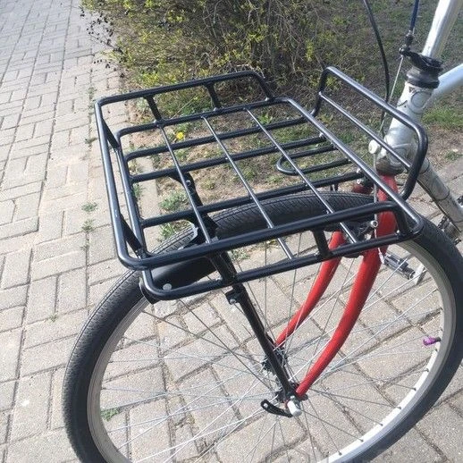 - На нем можно закрепить передний ящик или корзину или перевозить сумку и рюкзак.