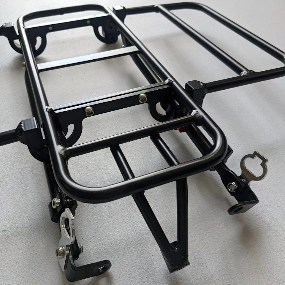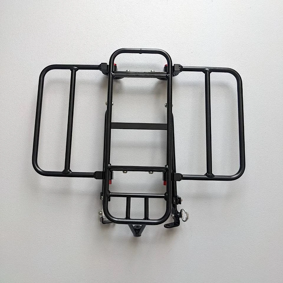 - На нем можно закрепить передний ящик или корзину или перевозить сумку и рюкзак.