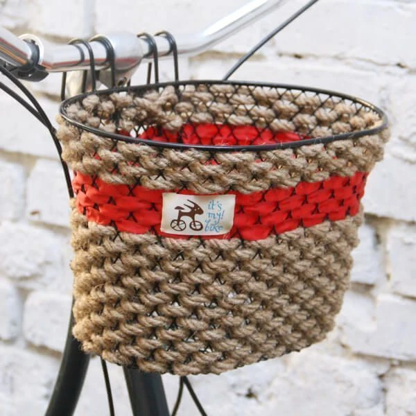 Прекрасная велосипедная корзина на руль с алюминиевой основой и прочным канатом.