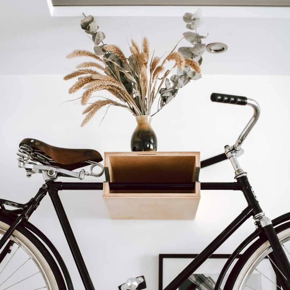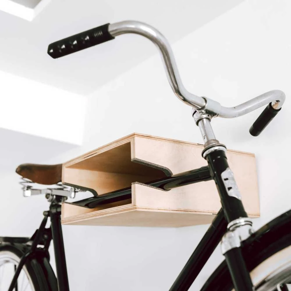 Деревянная полка для велосипеда - это скорее не велосипедный аксессуар, а крутой предмет интерьера. Она позволит повесить велосипед в квартире, на даче, он сам станет приятным добавлением к интерьеру.