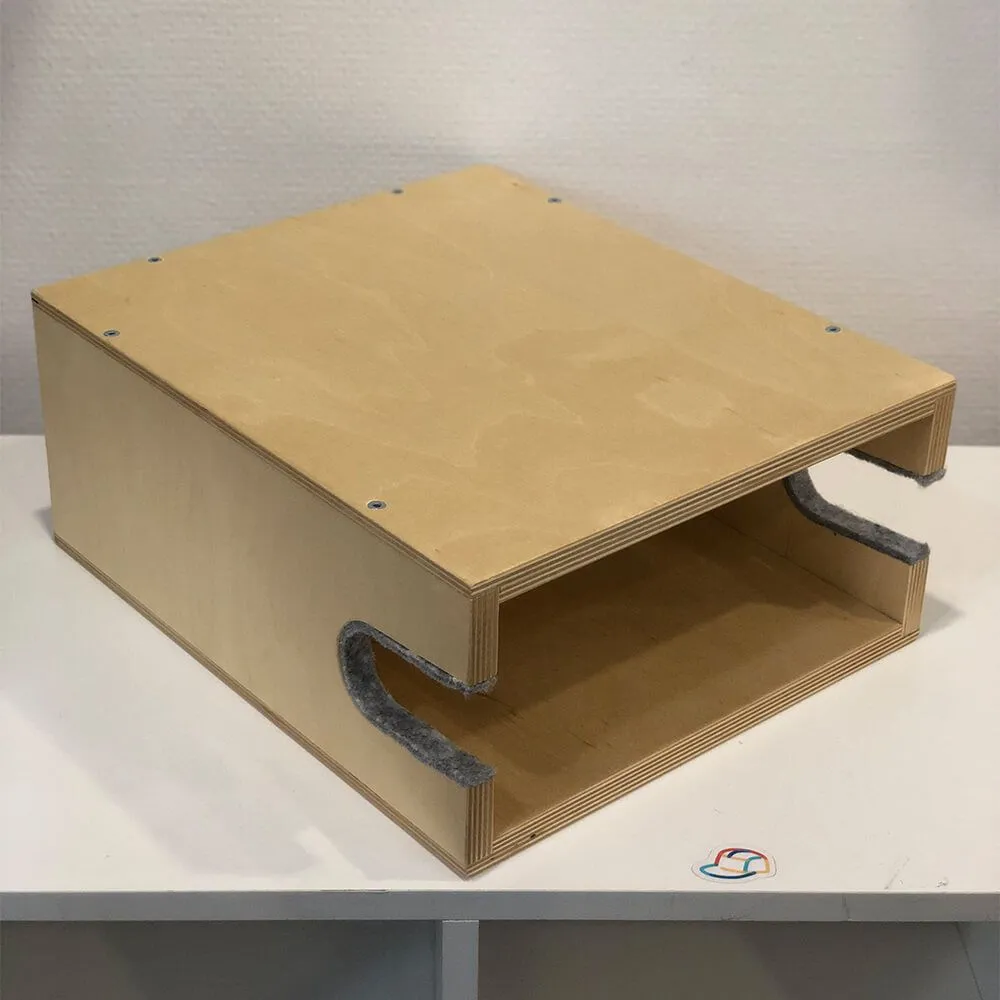- Полки сделаны из 15 миллиметровой фанеры, покрытой цветной морилкой и натуральным маслом для дерева.