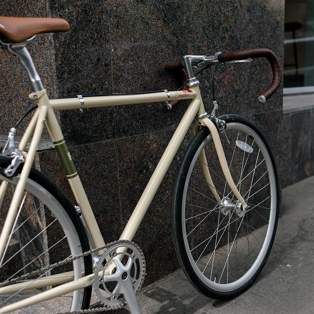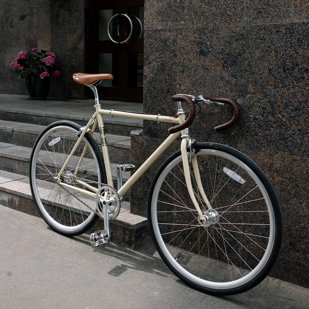 Бюджетный городской велосипед с фиксированной передачей.
