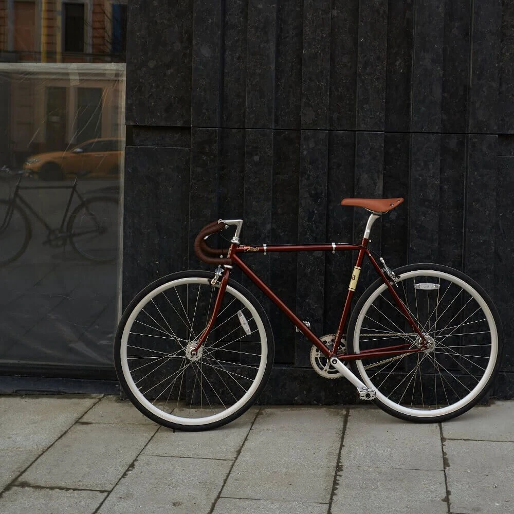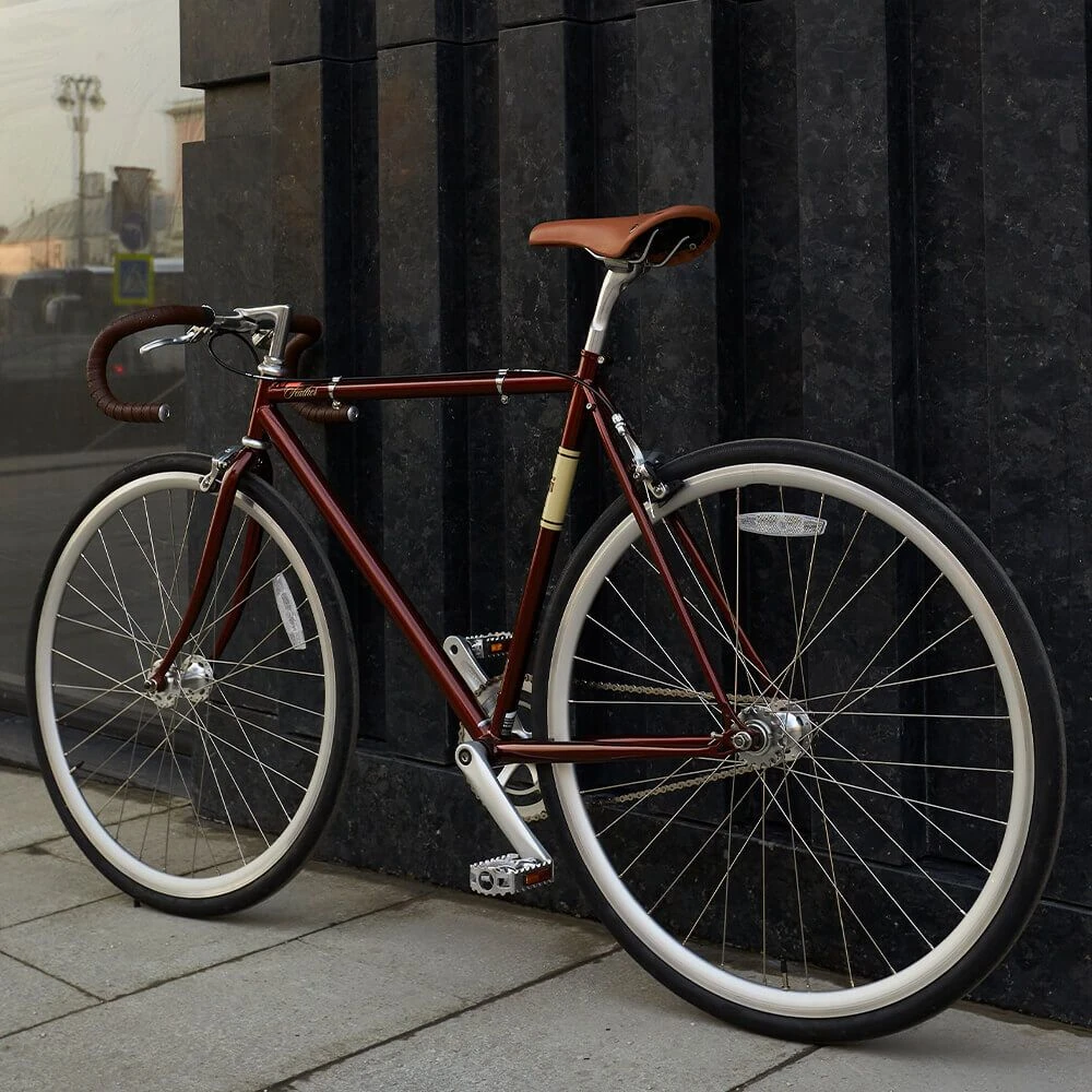 Бюджетный городской велосипед с фиксированной передачей.