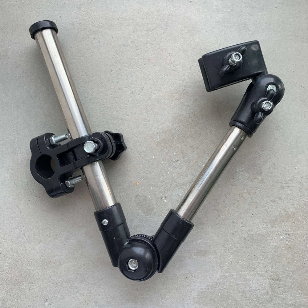 - Надежный, прочный, но при этом имеет гибкий характер (может наклоняться во все стороны, подстраиваясь под ваш рост, строение велосипеда и зонт).