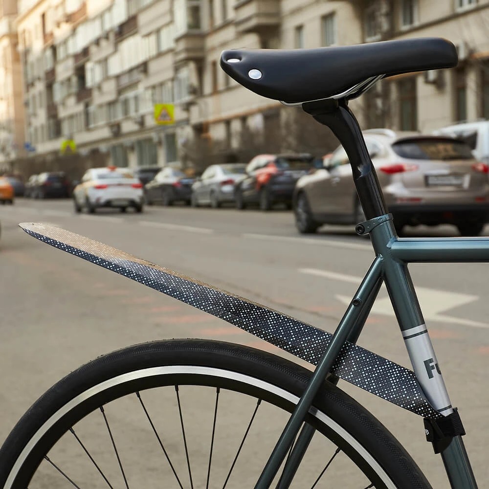 Благодаря большой площади велосипедное заднее складное крыло Mini Wings Looong отлично защищает спину и голову от попадания брызг воды и грязи.