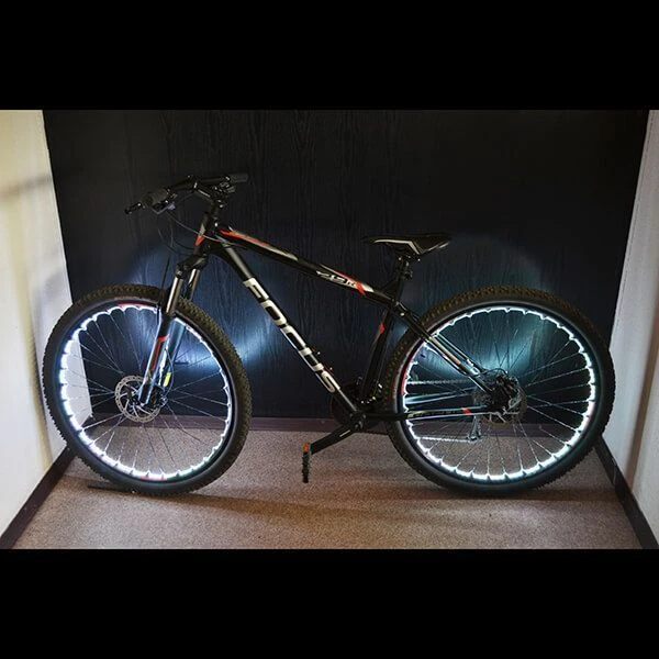 - Эластичная конструкция со встроенными диодами, длины которых хватает, чтобы расположить ее по всему ободу колеса.