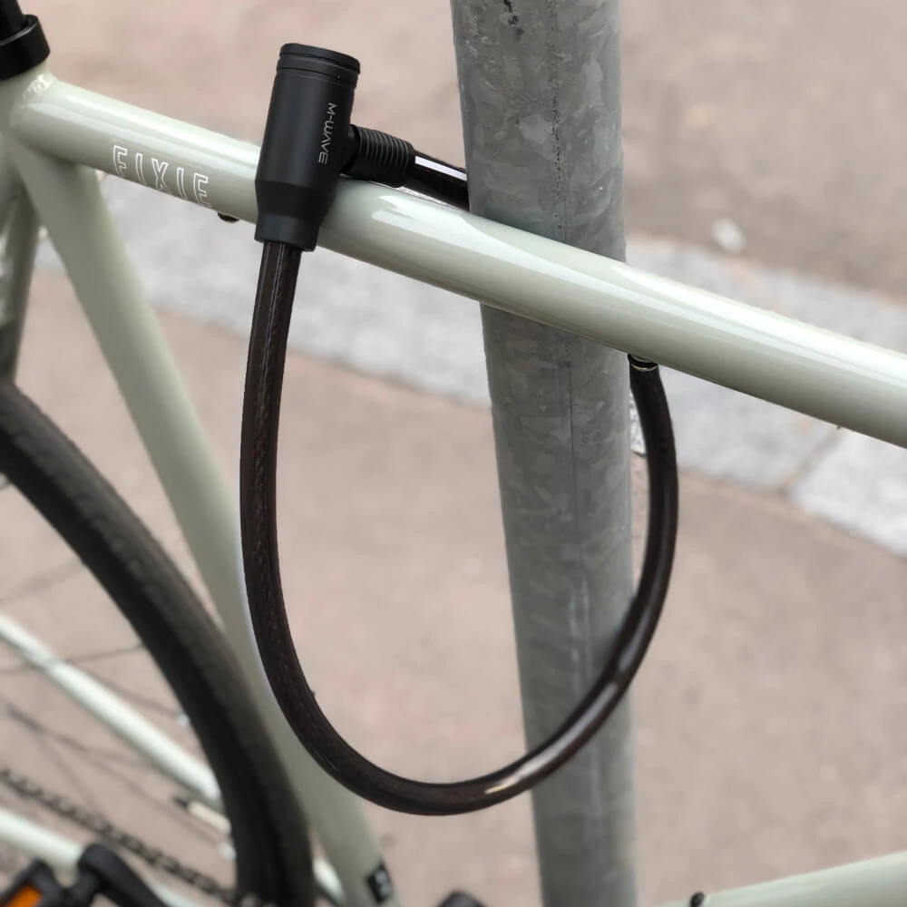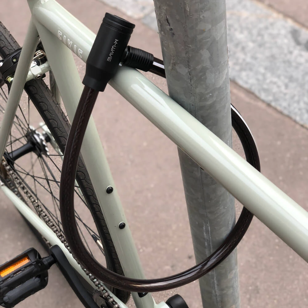 Надежный тросовый замок для велосипеда со светоотражающей полосой.