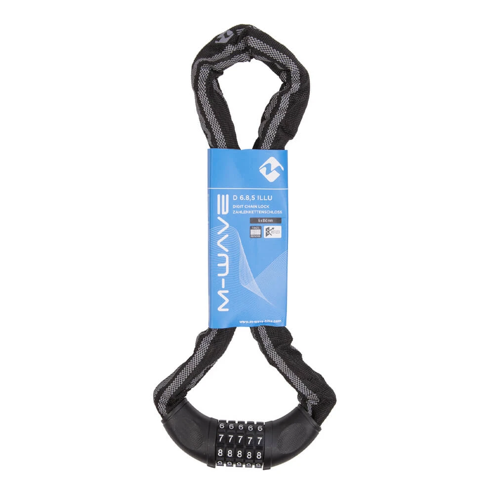 Кодовый замок-цепь для велосипеда M-Wave со светоотражающими полосками.