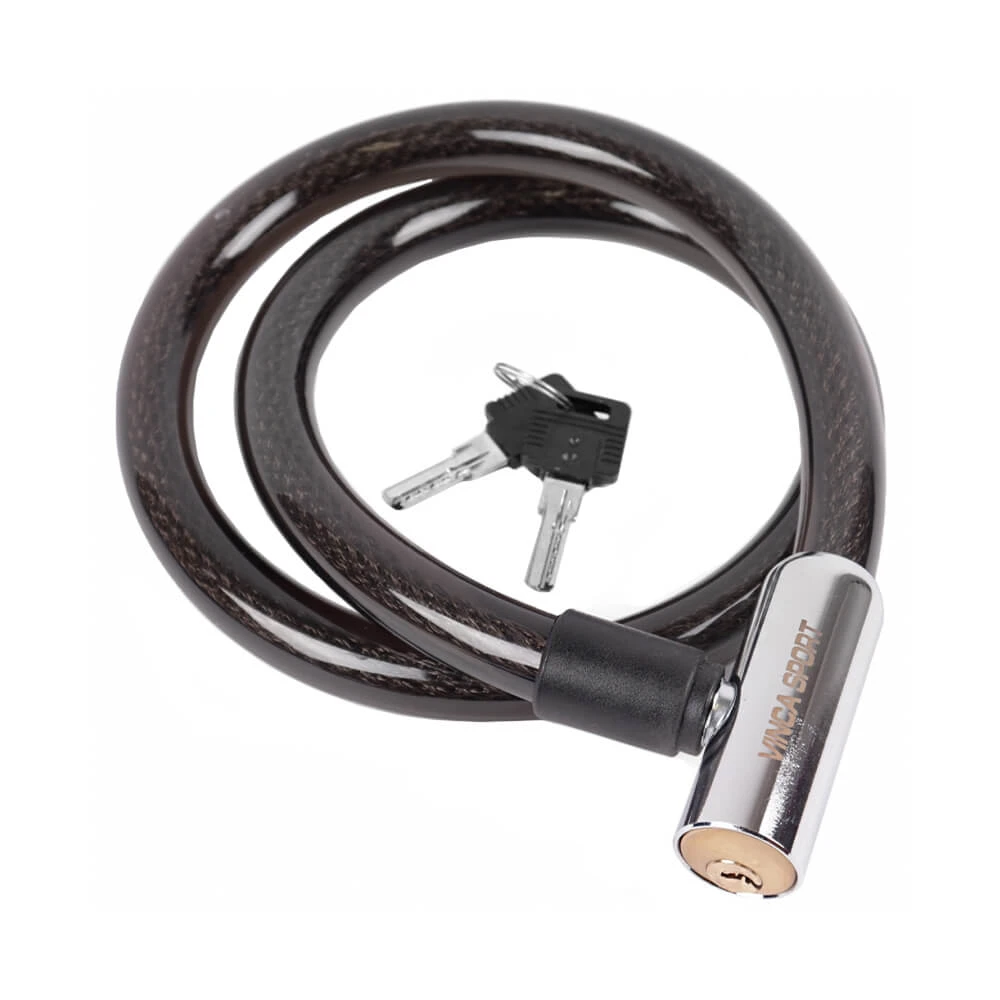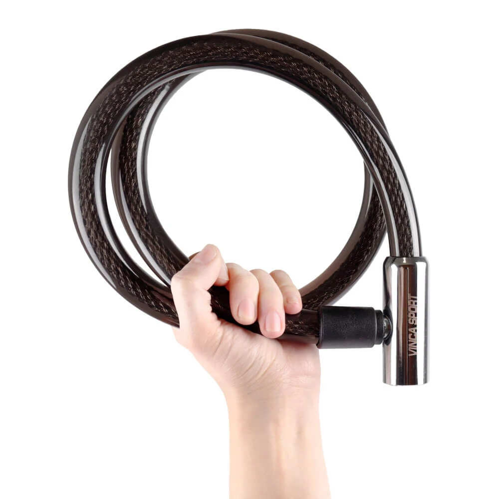 Велосипедный черный трос-замок со стальной головкой.