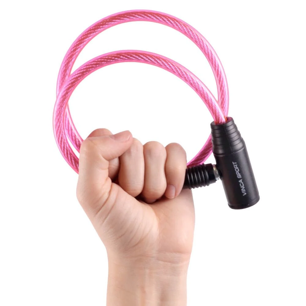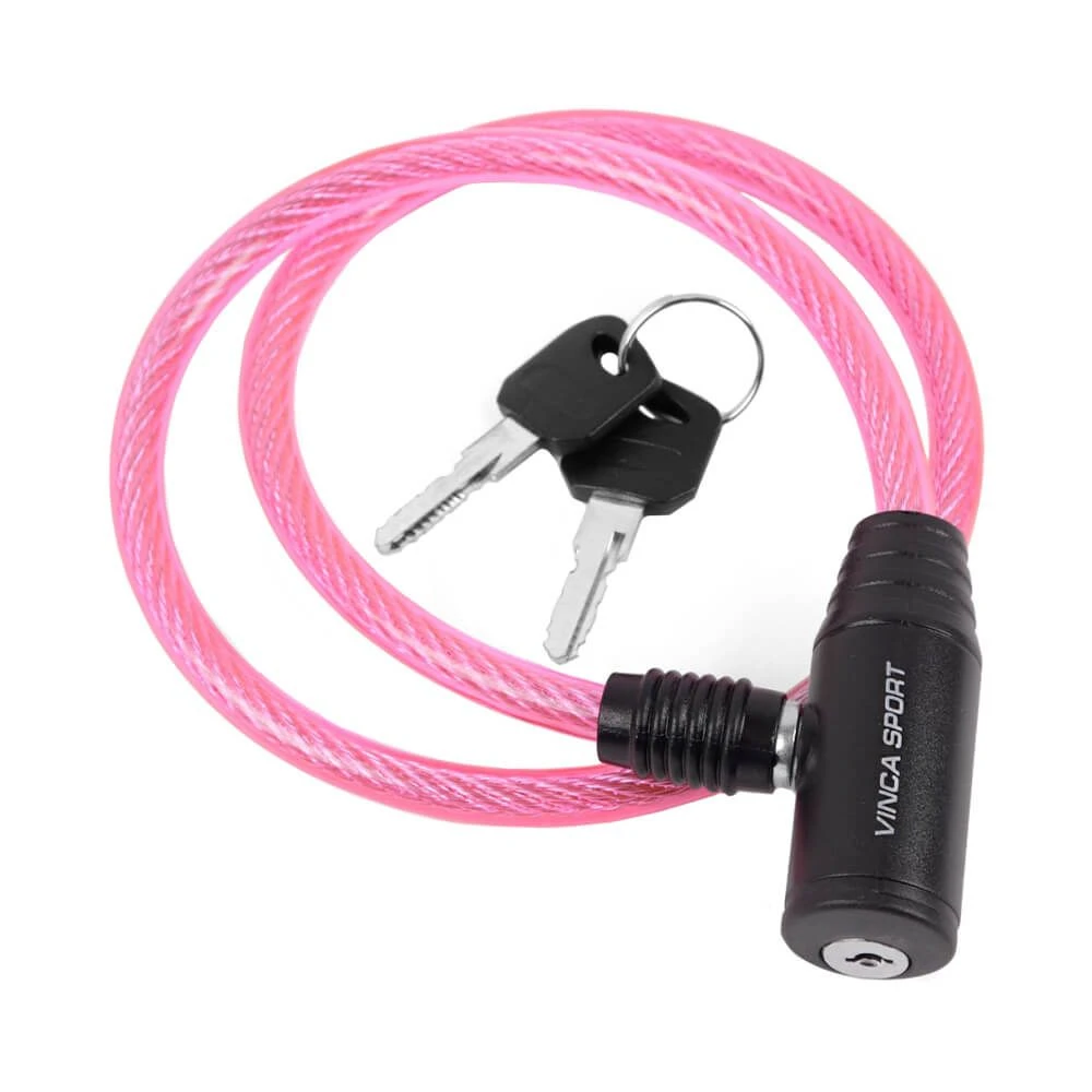 Велосипедный яркий розовый трос-замок.