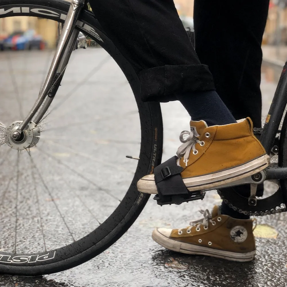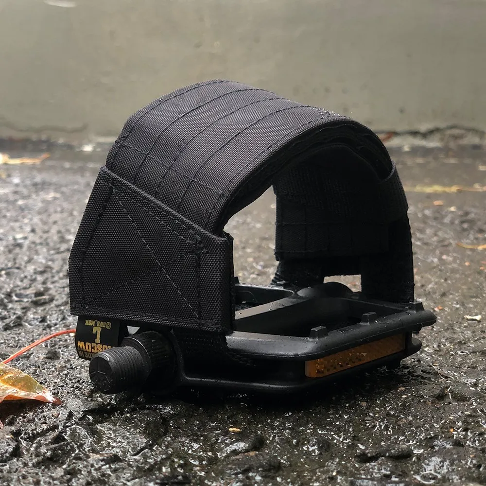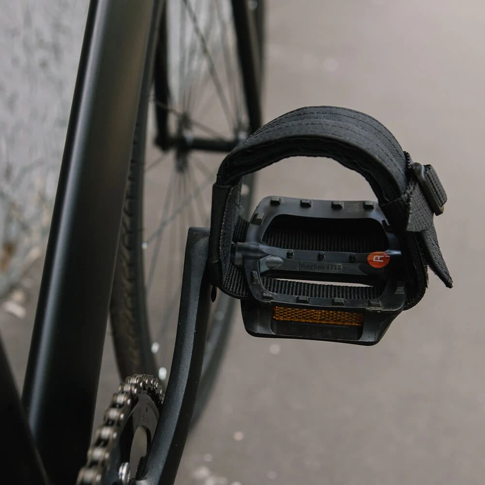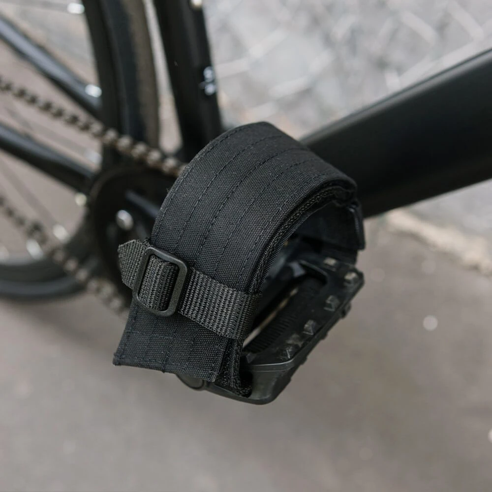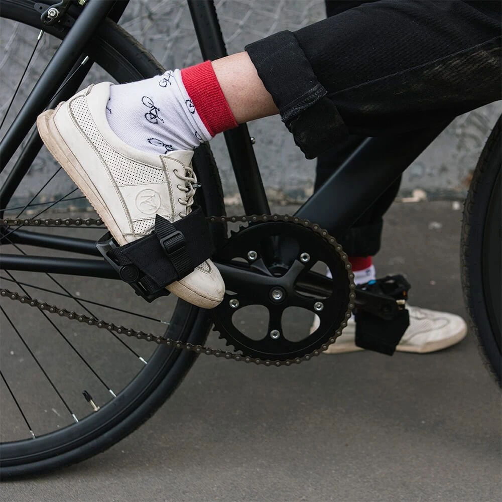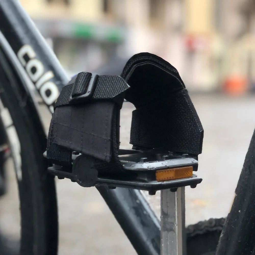 Педальные стрепы на липучке для MTB/BMX педалей-платформ из материалов повышенной прочности с дополнительными страховочными ремнями, предотвращающими расстегивание. Предназначены для контакта ноги в повседневной обуви и системы шатунов на велосипедах с фиксированной передачей. Разработаны и протестированы для торможения и педалирования, а так же для исполнения трюков во фристайл дисциплине с большой нагрузкой.