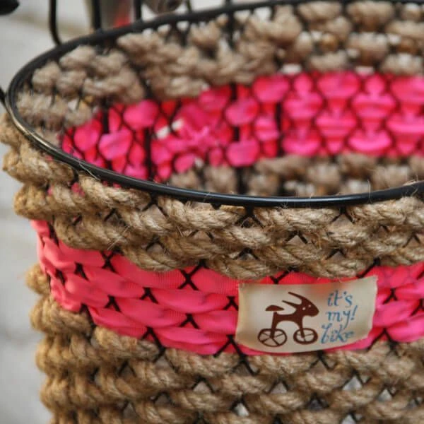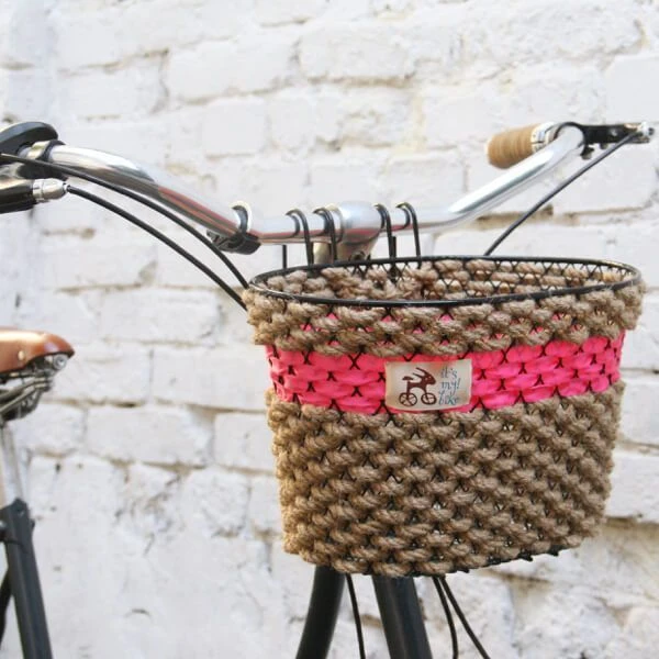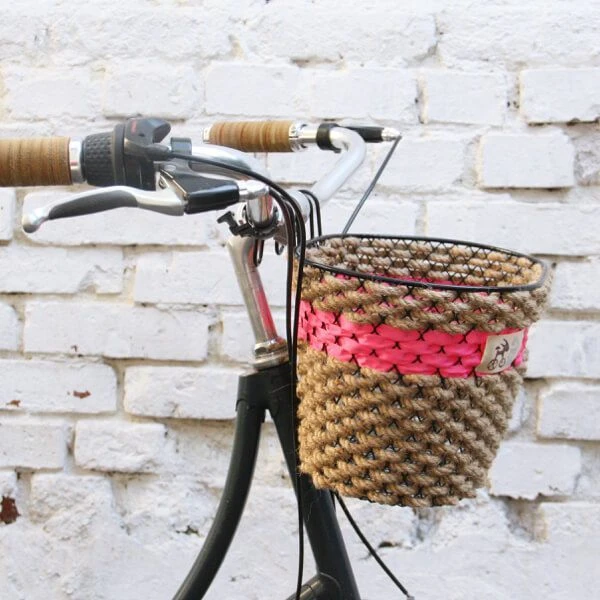 Прекрасная велосипедная корзина на руль с алюминиевой основой и прочным канатом.