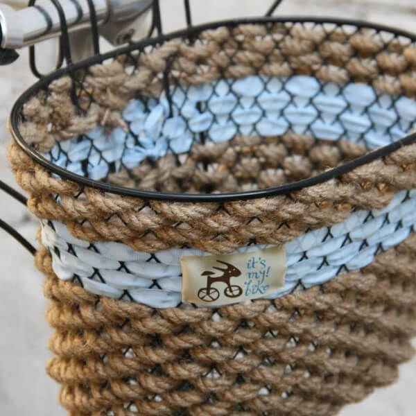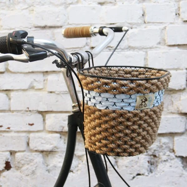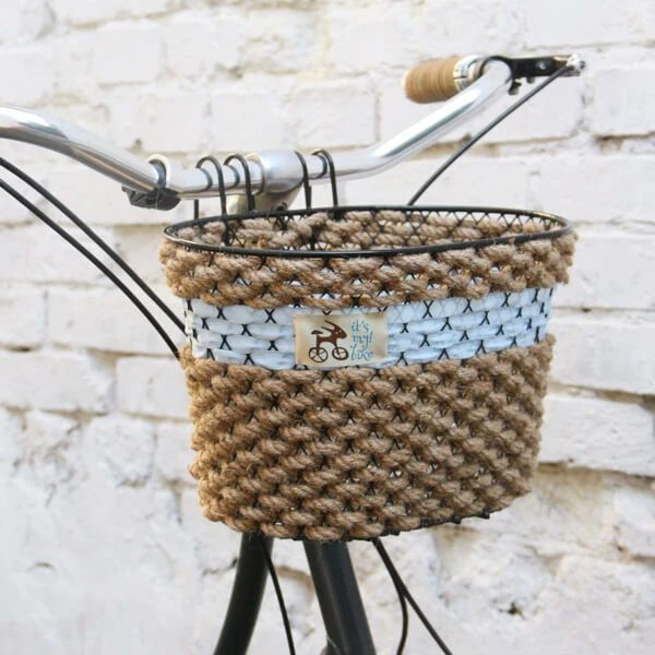 Прекрасная велосипедная корзина на руль с алюминиевой основой и прочным канатом.