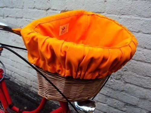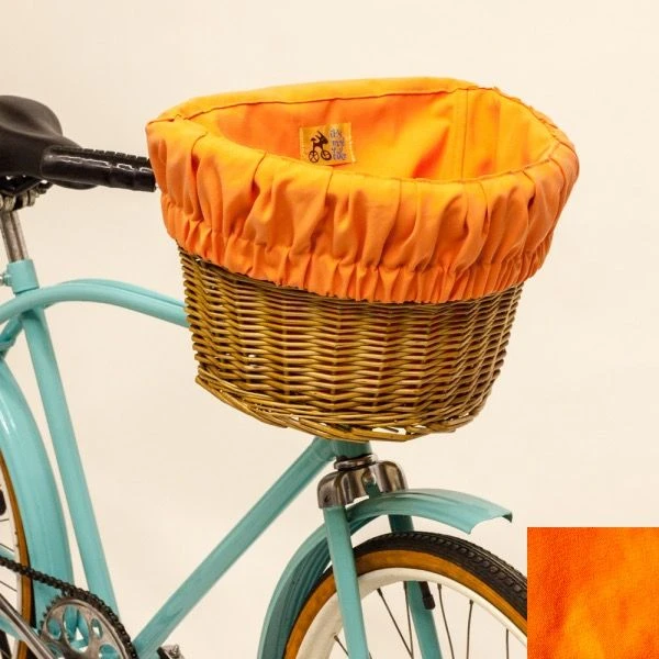 Удобная корзина на руль с ярким вкладышем из ткани.