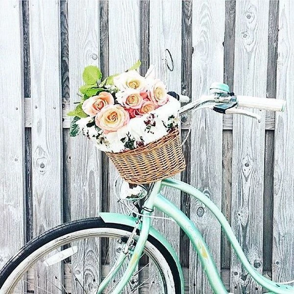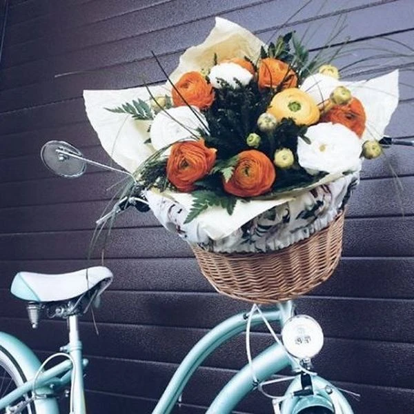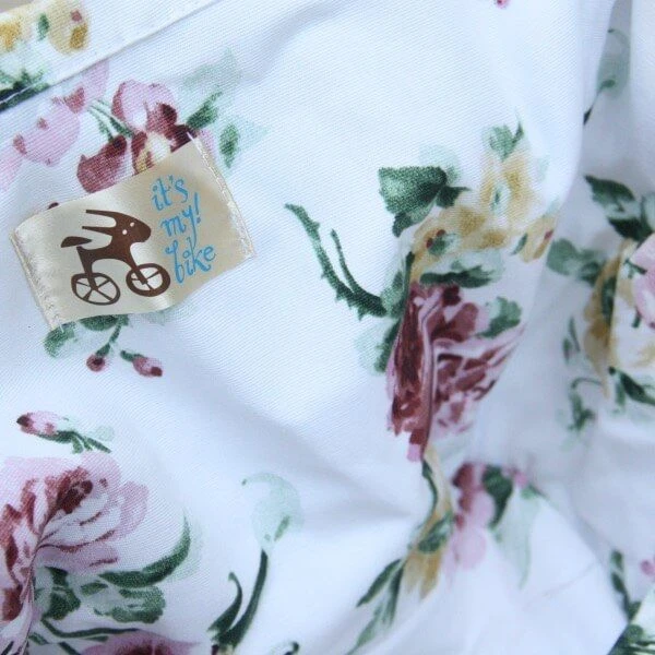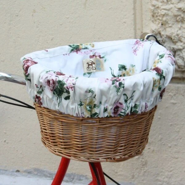 Удобная корзина на руль с ярким вкладышем из ткани.