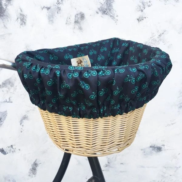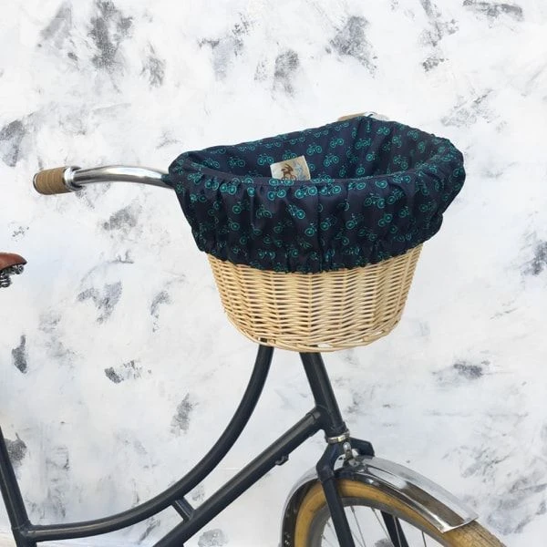 Удобная корзина на руль с ярким вкладышем из ткани.