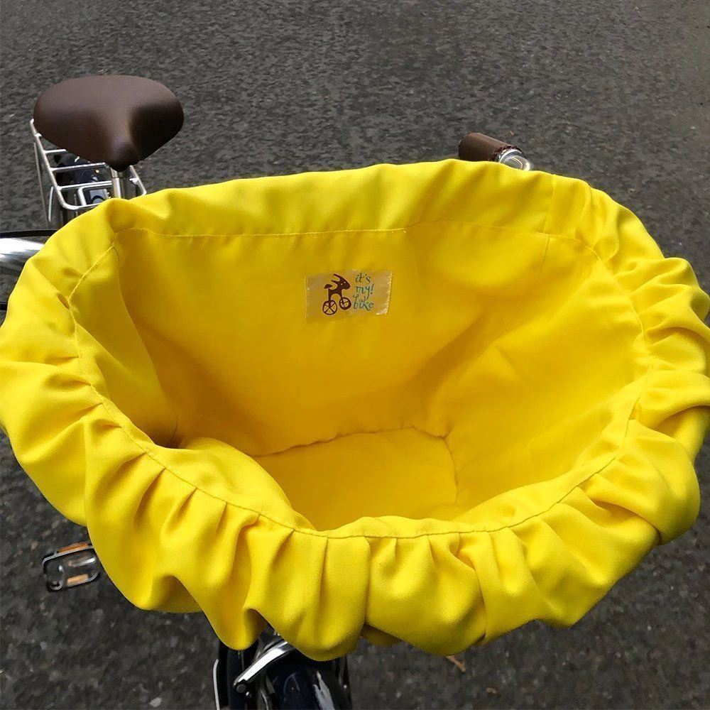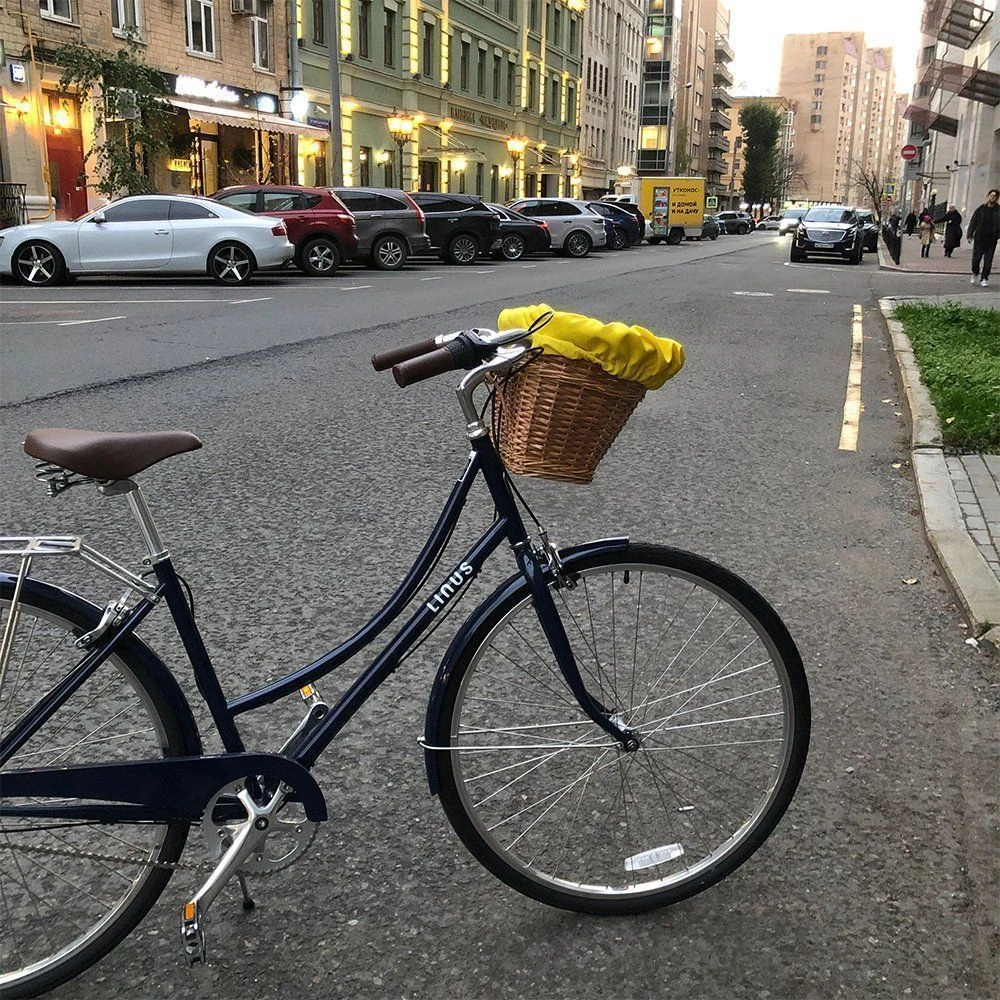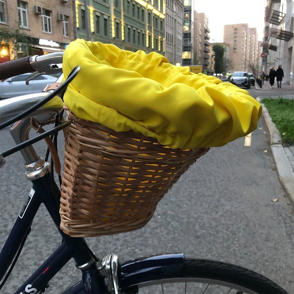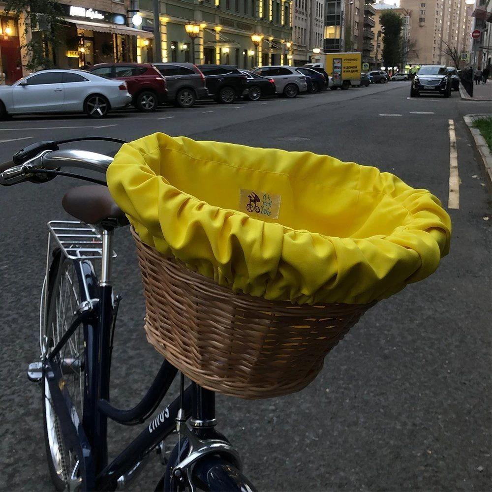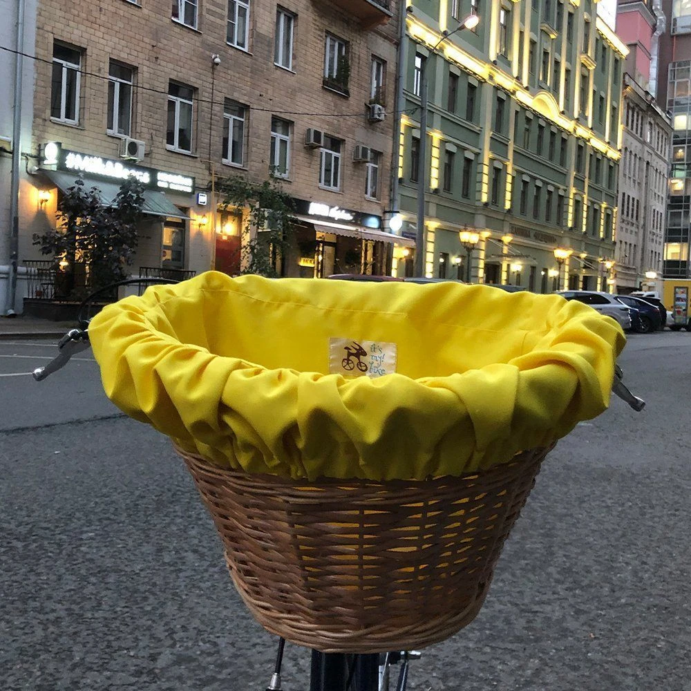 Удобная корзина на руль с ярким вкладышем из ткани.