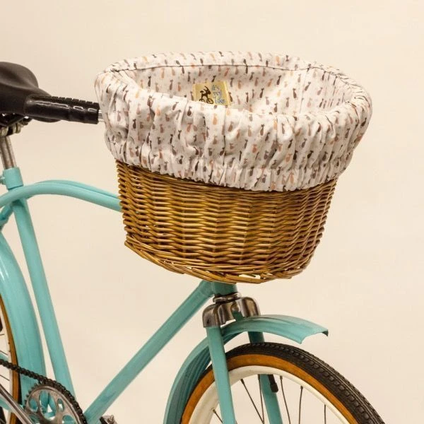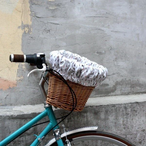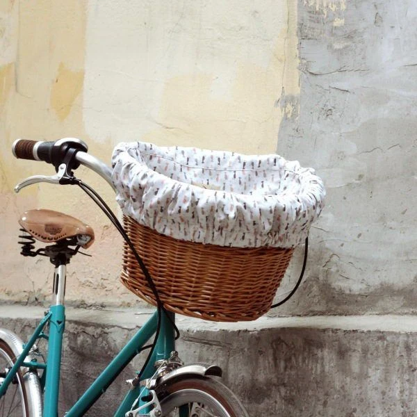 Удобная корзина на руль с ярким вкладышем из ткани.