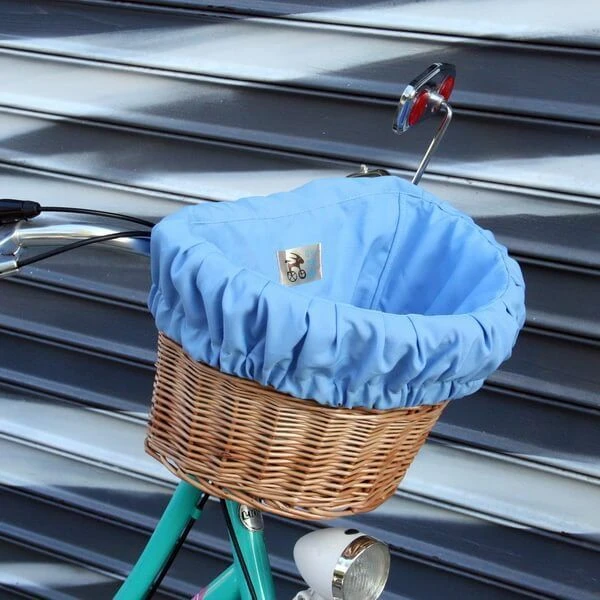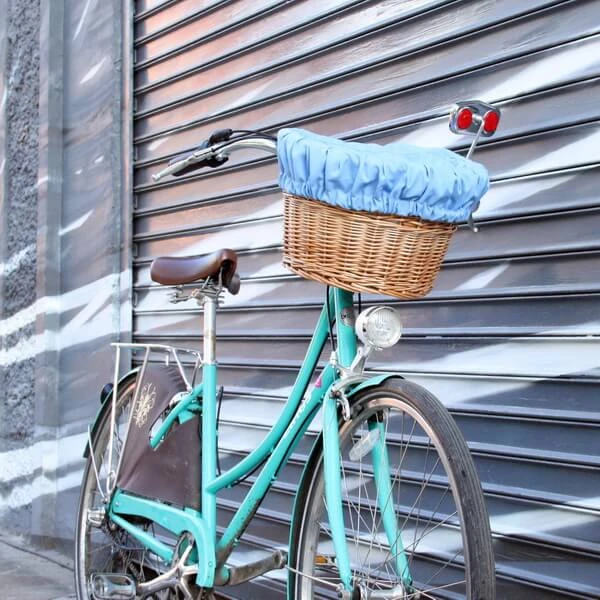 Удобная корзина на руль с ярким вкладышем из ткани.
