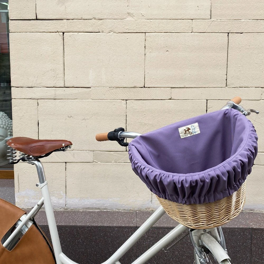Удобная корзина на руль с ярким вкладышем из ткани.