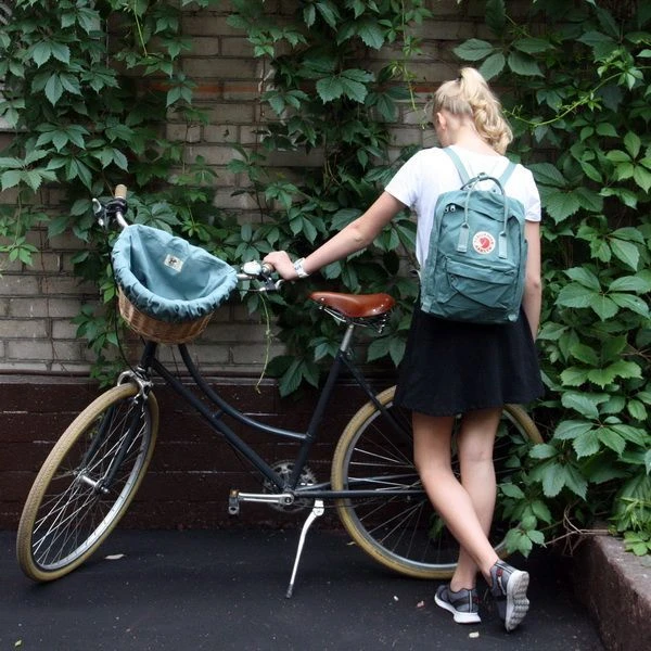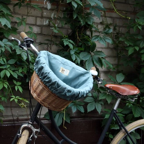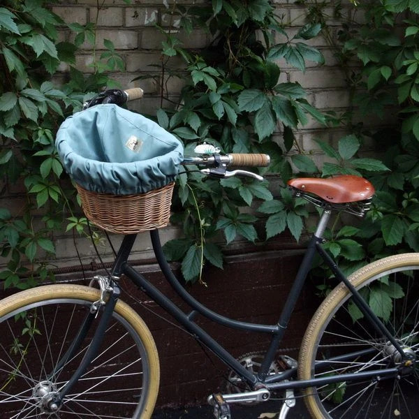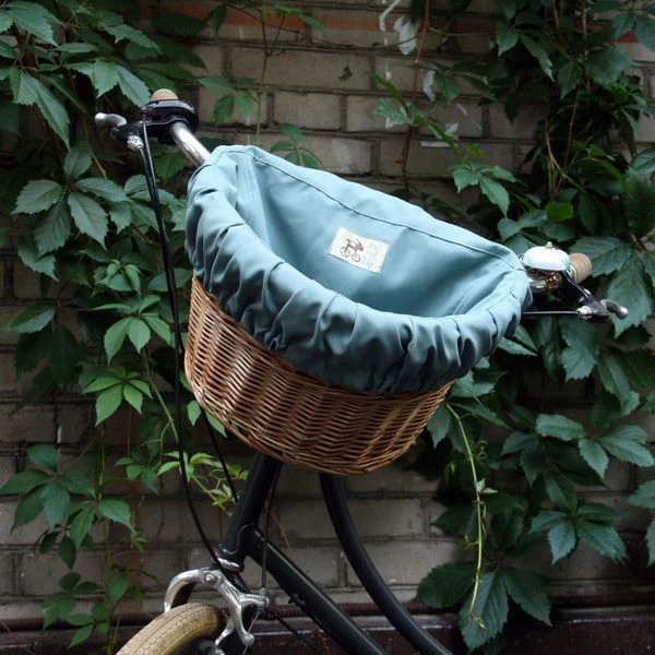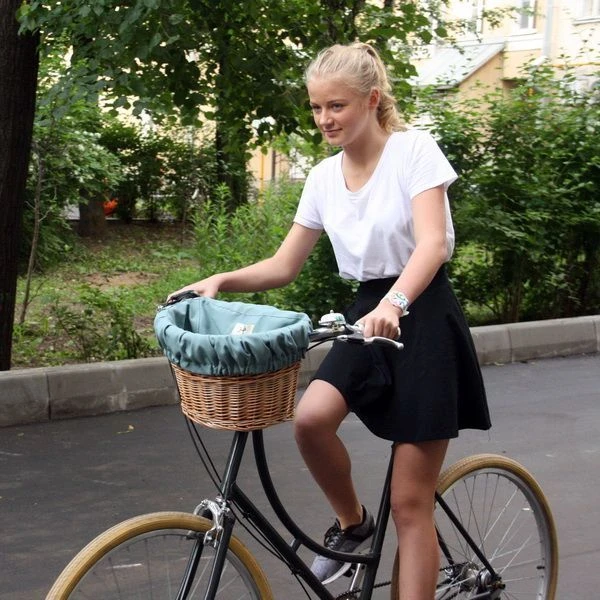 Удобная корзина на руль с ярким вкладышем из ткани.