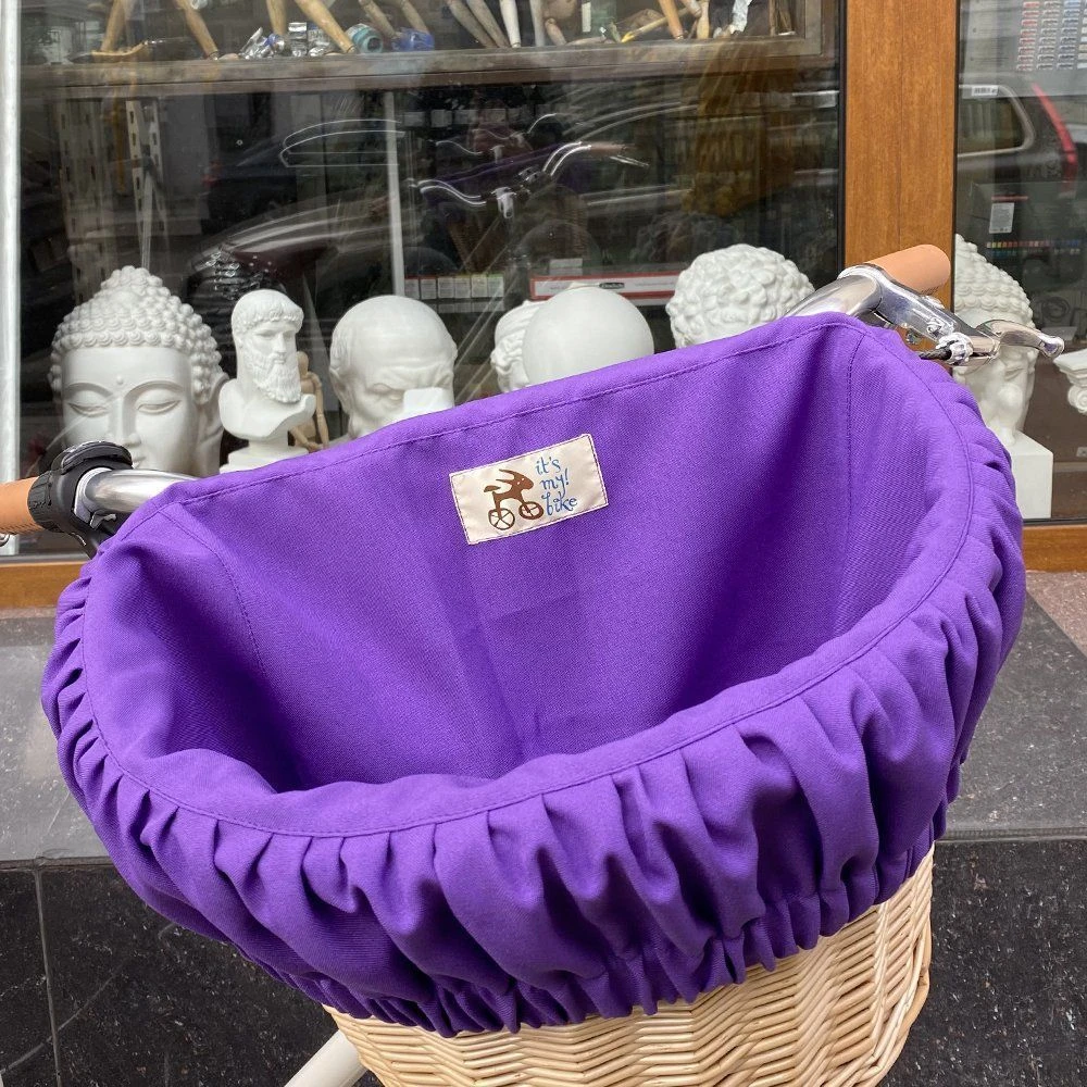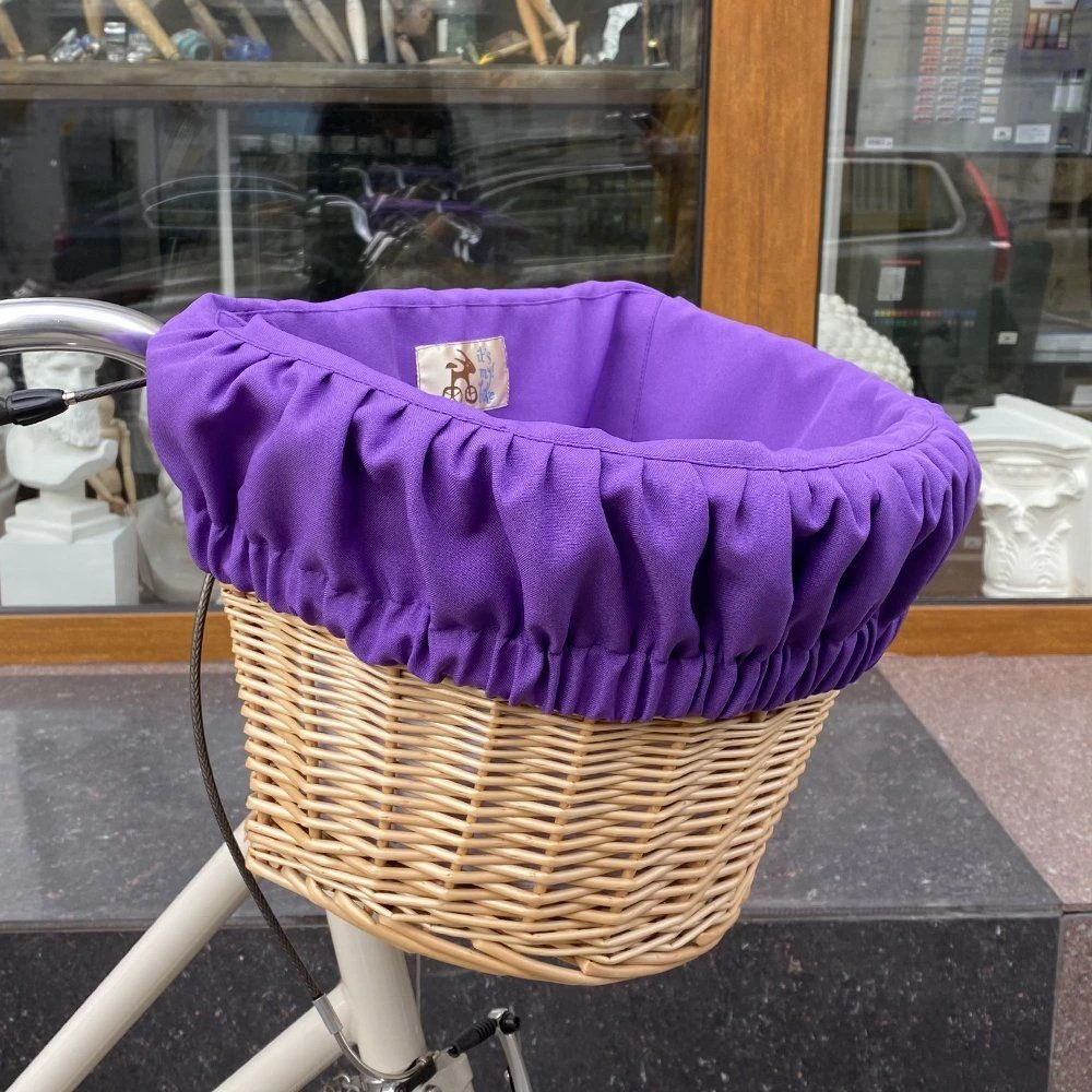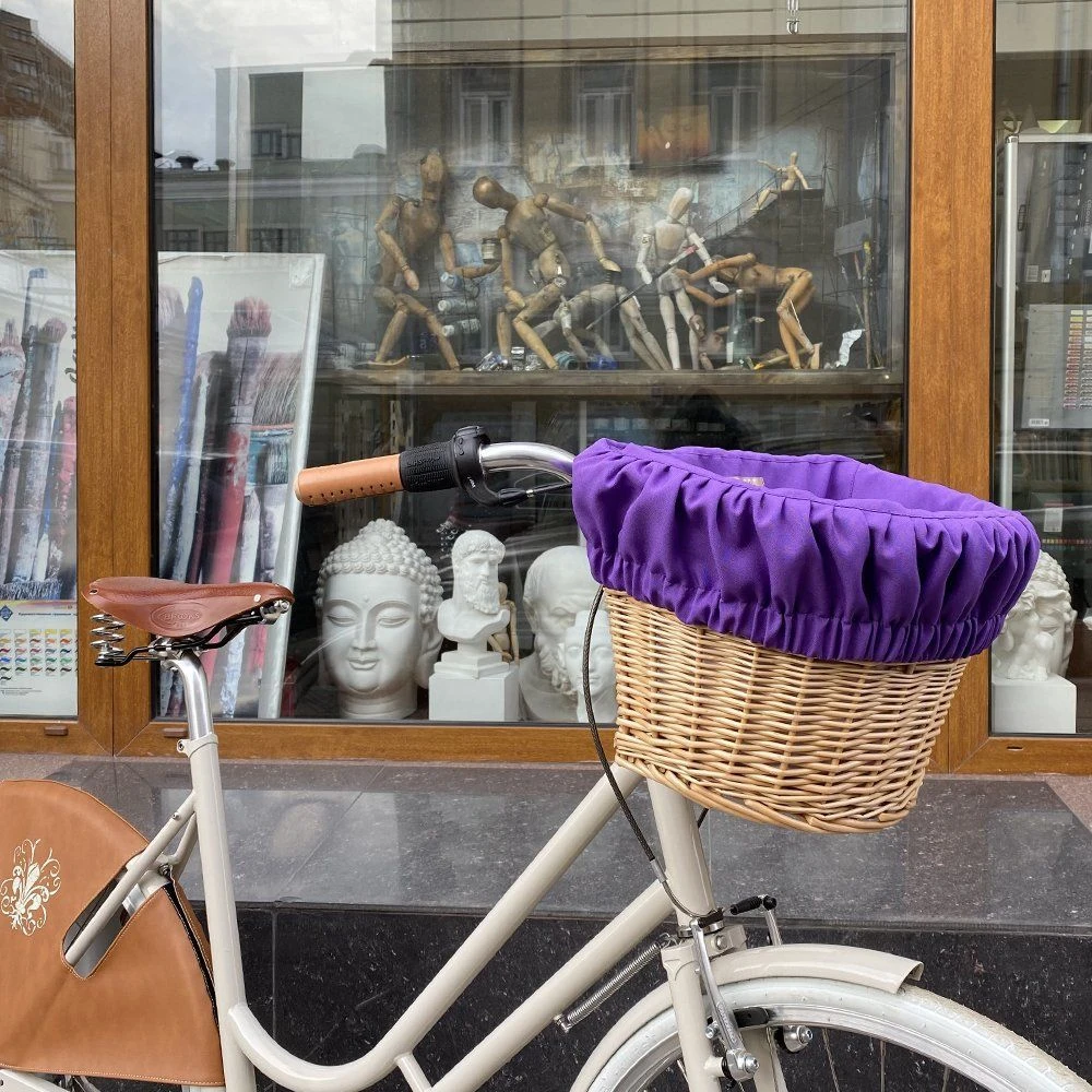 Удобная корзина на руль с ярким вкладышем из ткани.