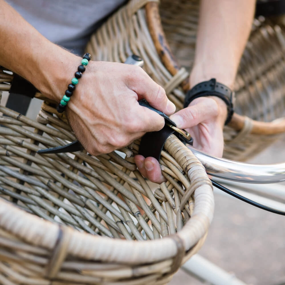 - Крепится на руль при помощи двух кожаных ремешков