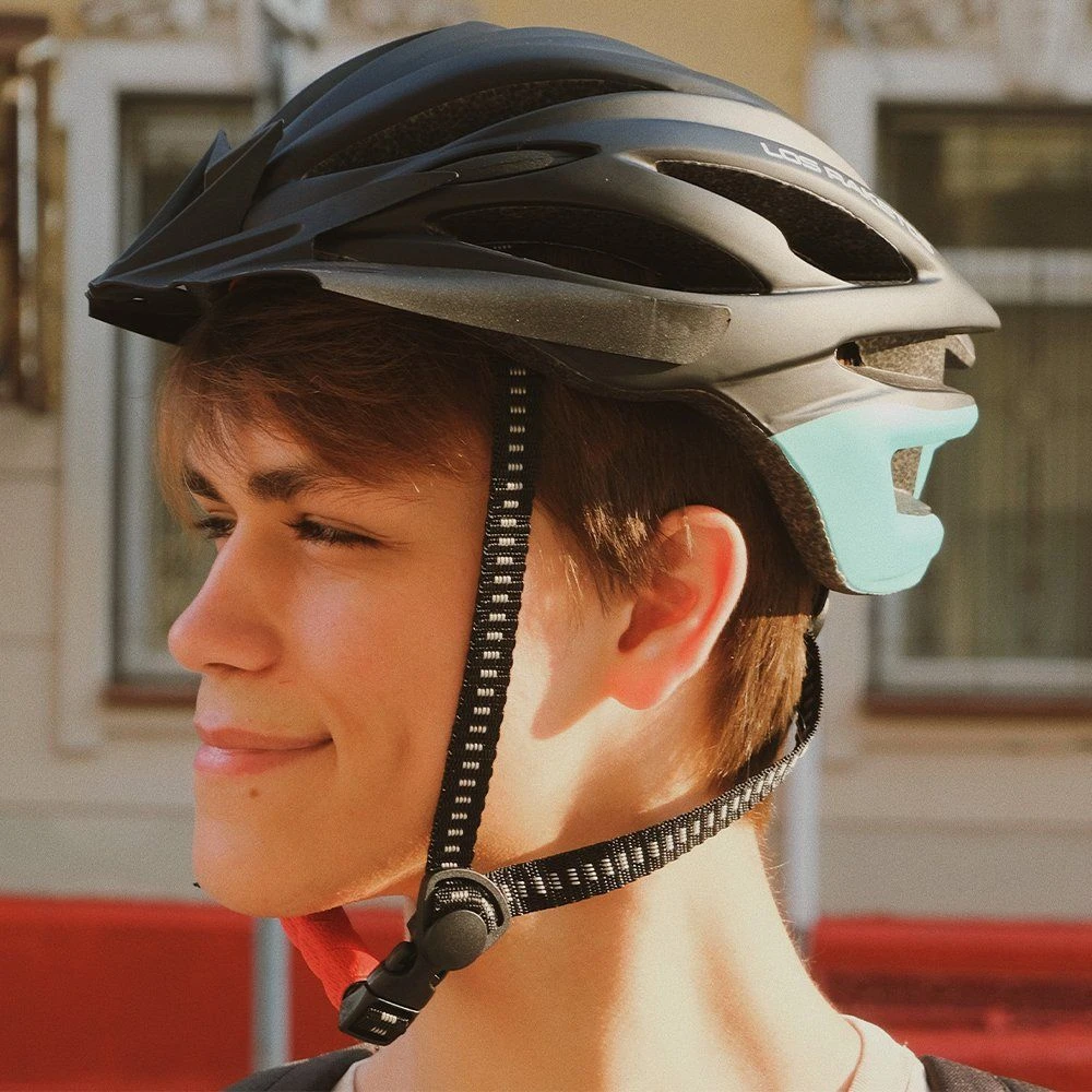 Шлем можно использовать как с козырьком, так и без него. А дизайн в виде вставки приятного голубого цвета не оставит окружающих равнодушными)